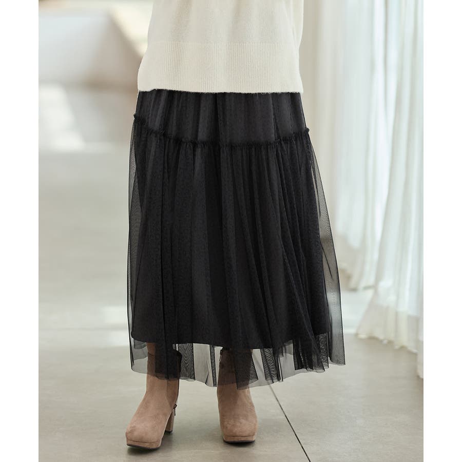 商品カテゴリ:5340248881 ボトムス スカート ロングスカート ロング丈 チュール ギャザー ティアード 無地 ヒョウ柄 ウエストゴム 裏地付き フェミニン オールシーズン 黒 カテゴリ201010 bottoms skirt マキシスカート マキシ丈 マキシ 膝下 ひざ下 ロンスカ マキシ丈スカート 透け感 シアー ふんわり フリル 段々 華やか 伸びる 楽 ゆったり ゴム 裏地 透けない エレガント 可愛い おしゃれ 大人可愛い Sサイズ S 小さいサイズ Mサイズ Lサイズ LLサイズ LL 大きいサイズ FP501 大人カジュアル 大人 20代 30代 40代 50代 アラサー アラフォー アラフィフ OL トレンド 流行 シーズンオール 春 春物 春服 春夏 夏 夏物 夏服 秋 秋物 秋服 秋冬 冬 冬物 冬服 新作 新着 ブラック クロ クロヒョウ柄 グレー 灰色 グレーヒョウ柄 モカ ブラウン 茶色 8881 534-24-8881 5340248881 GLACIER グラシア honeys ハニーズ レディースファッション ladies fashion 女性 女 レディース ファッション 女性服 服 婦人服 534024888132 チュールスカート 価格3980