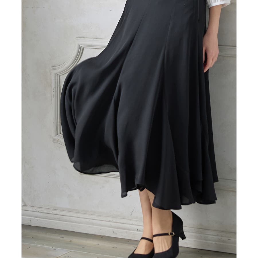 動くたびに裾にかけてひらひらと揺れるフィット&フレアシルエットがエレガントなデザイン。