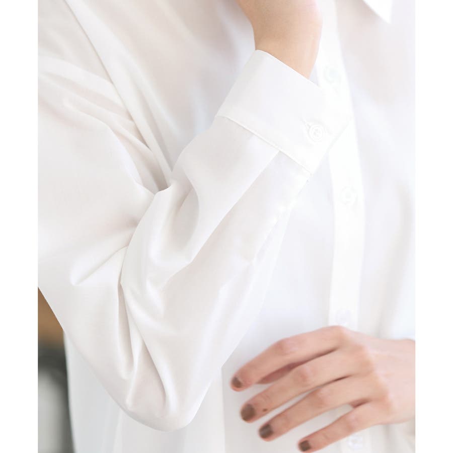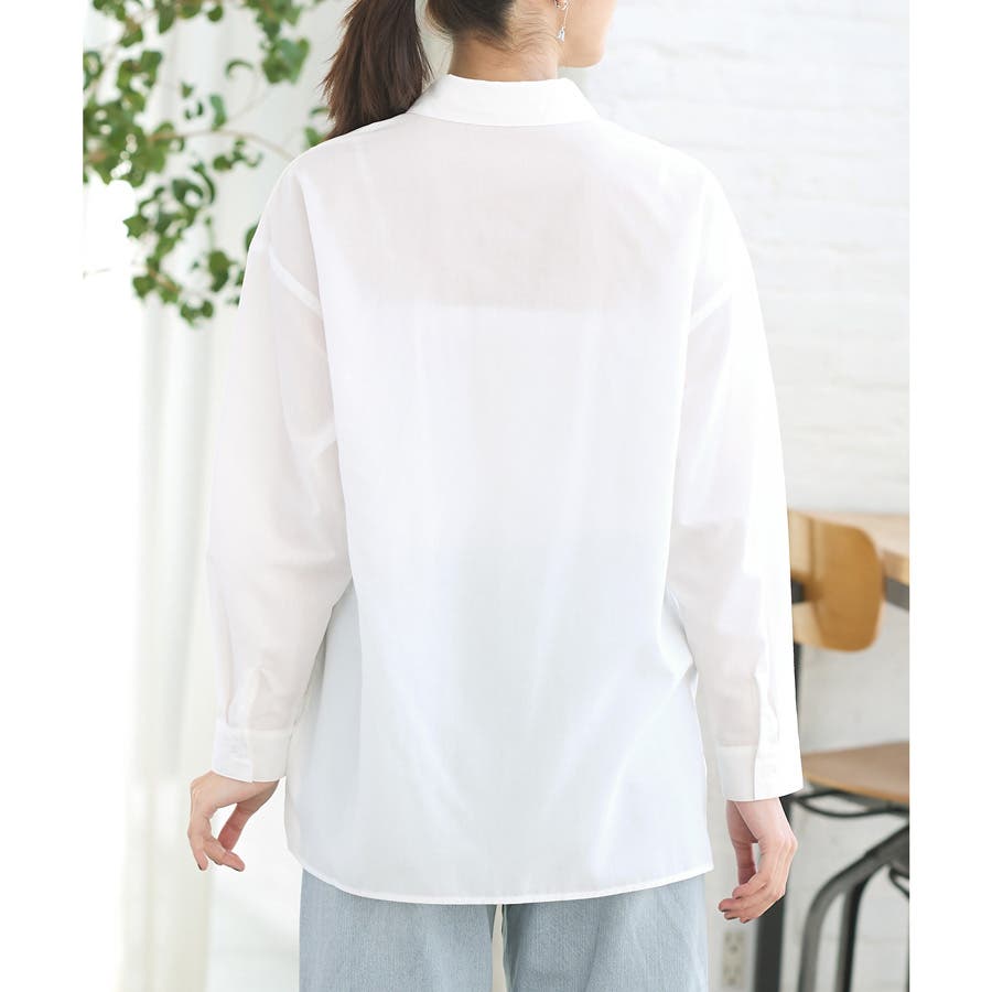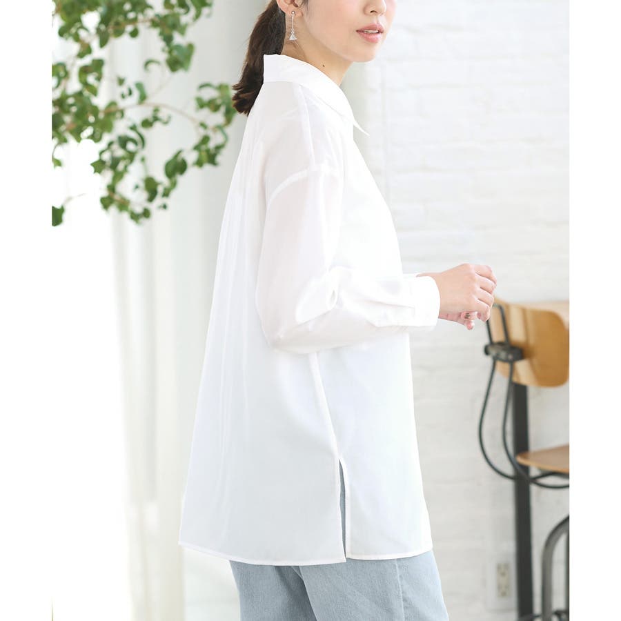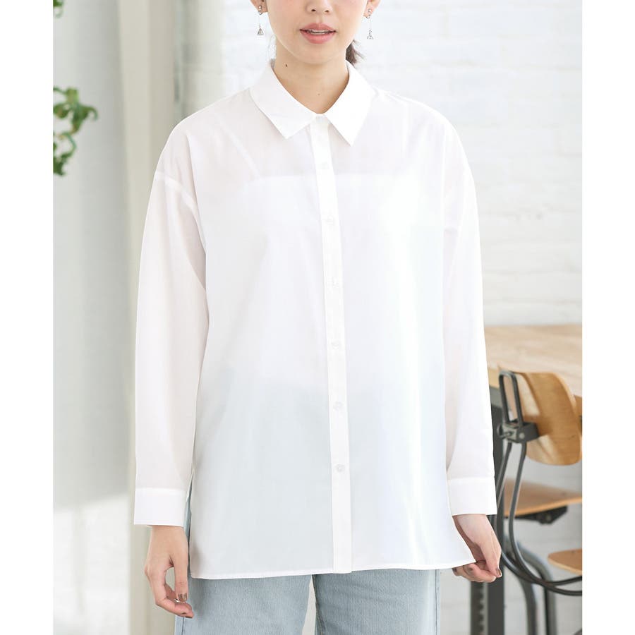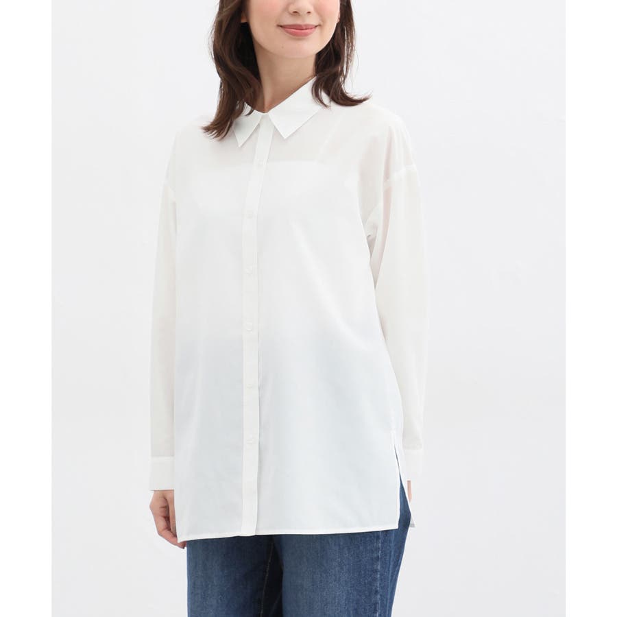 シャツは、ゆったりめの幅とヒップまで隠れる丈感で体型もカバー。