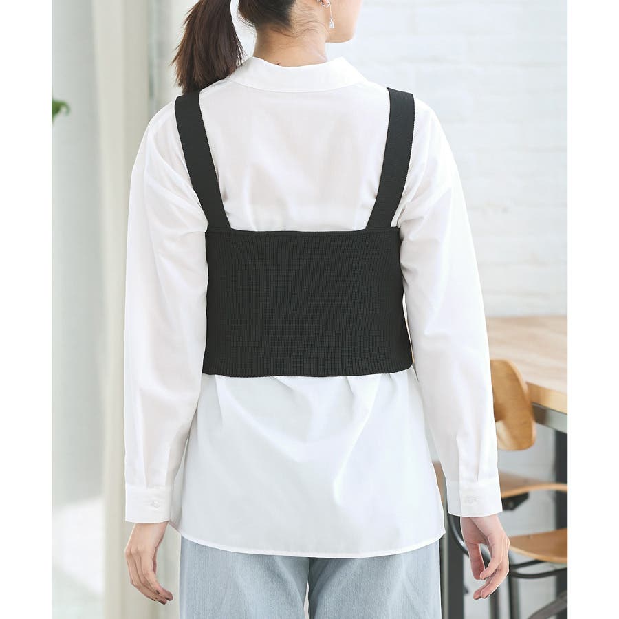 コンパクトな丈感のビスチェは、表面感のある畦編と太めの肩ひもがポイント。