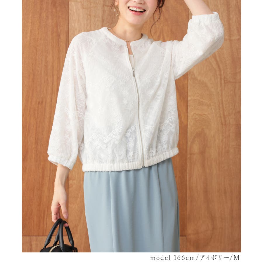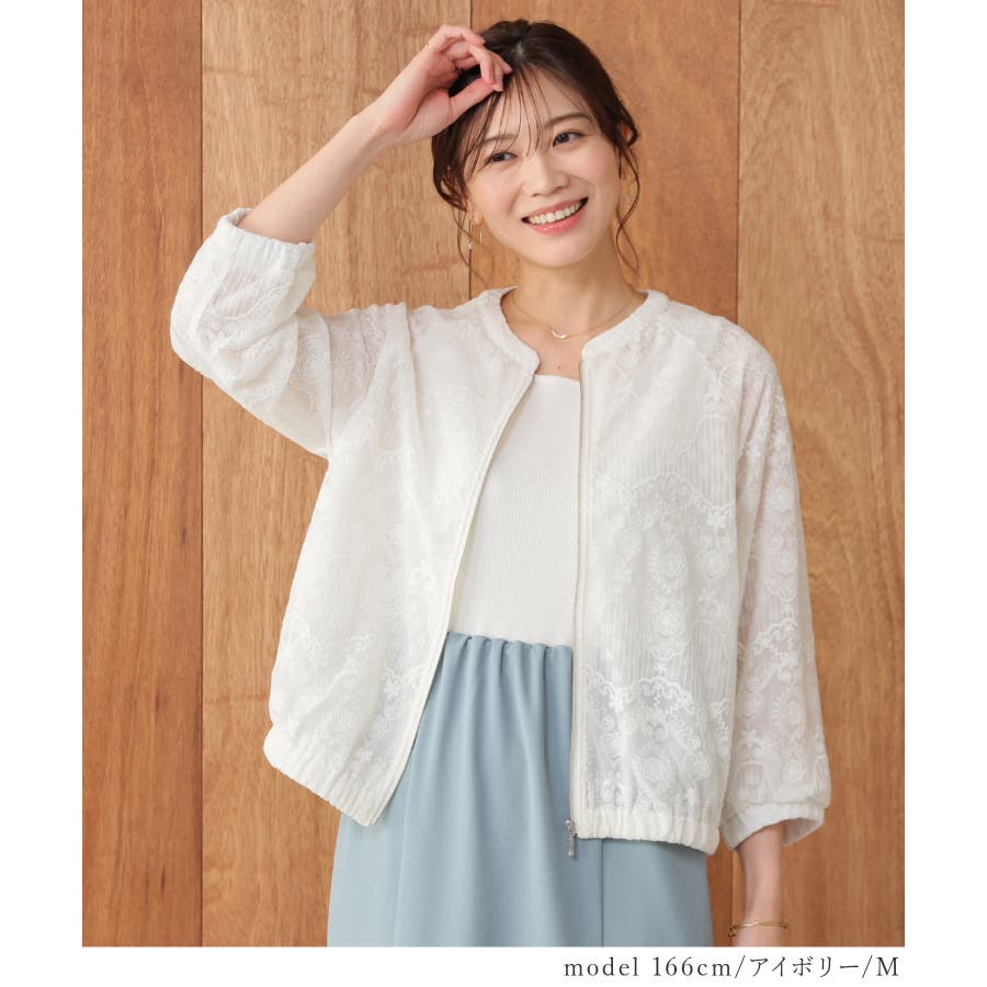 商品カテゴリ:5340428539 アウター ジャンパー ブルゾン ジャケット レース チュール シフォン 二枚仕立て 裾ゴム 袖口ゴム ラグランスリーブ カジュアル 夏 白 黒 カテゴリ401000 outer jacket 上着 総レース レースブルゾン チュール刺繍レース 2枚仕立て ラグラン袖 フェミニン 大人可愛い フェミカジュ おしゃれ 大人カジュアル Sサイズ S 小さいサイズ Mサイズ Lサイズ LLサイズ LL 大きいサイズ FP601 大人 30代 40代 50代 60代 ミセス きれいめ こなれ ママ 垢抜け シーズン夏 夏物 夏服 夏秋 初秋 秋 秋物 秋服 新作 新着 アイボリー ホワイト ブラック ベージュ 肌色 ピンク 桃色 ピンクベージュ 8539 534-42-8539 5340428539 GLACIER lusso グラシアルッソ honeys ハニーズ レディースファッション ladies fashion 女性 女 レディース ファッション 女性服 服 婦人服 534042853931 8分袖レースブルゾン 価格5980