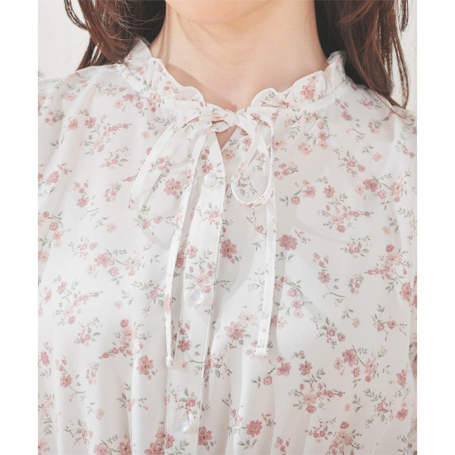 程良いボリューム感のキャンディースリーブと衿元のリボンで可愛らしさをプラス。。
