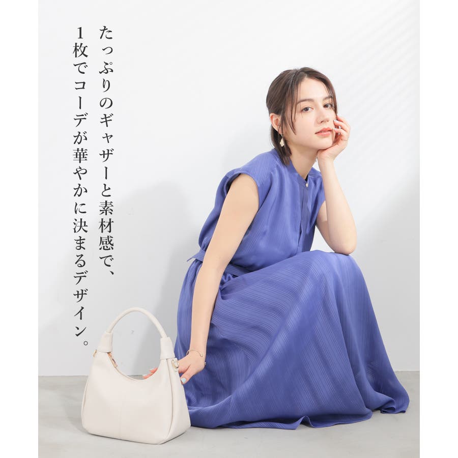 たっぷりのギャザーと素材感で、1枚でコーデが華やかに決まるデザイン。