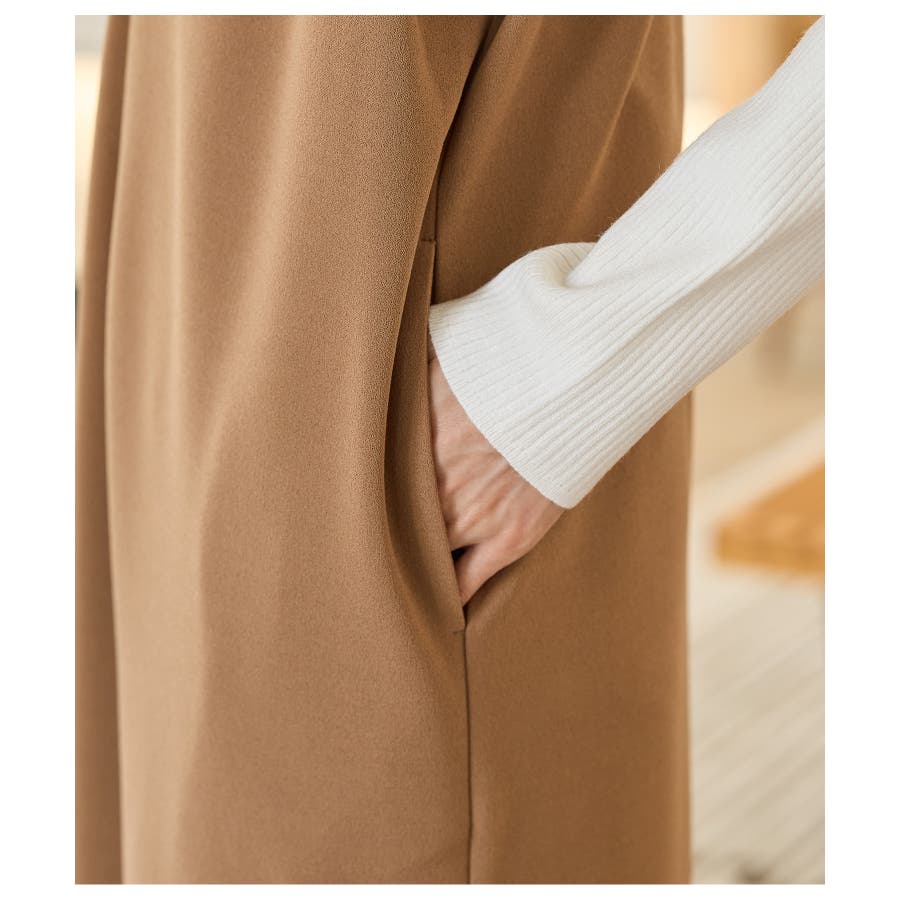 前後Vネックでさまざまなインナーと合わせやすく、着脱もラクラク。