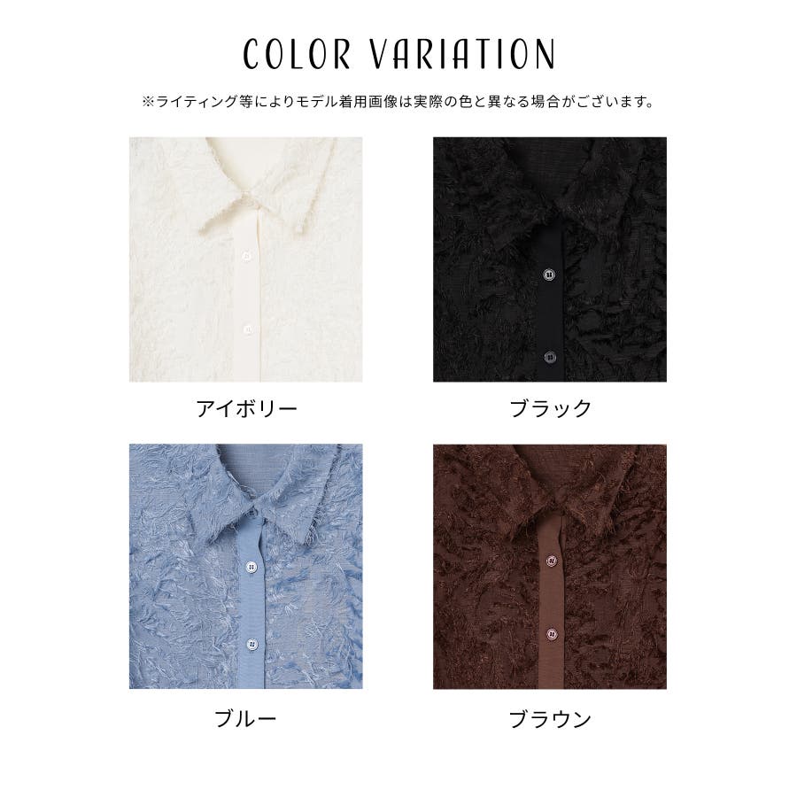 商品カテゴリ:5340610133 トップス ブラウス 長袖 シャツ ショート丈 レギュラーカラー フリンジ カットジャカード素材 フロントボタン ガーリー 秋 白 黒 カテゴリ105010 tops ブラウス長袖 長そで shirt 長袖シャツ シャツ長袖 短め丈 スタンダードカラー ジャカード織り 前ボタン 前開き 前釦 ボタン カジュアル ガーリーカジュアル 女の子 女子 可愛い かわいい kawaii おしゃれ Sサイズ S 小さいサイズ Mサイズ Lサイズ FP401 高校生 大学生 10代 20代 若い 学生 スクール ティーン ティーンズ ヤング JK JD トレンド 流行 中学生 人気 シーズン秋 秋物 秋服 秋冬 初冬 冬 冬物 冬服 新作 新着 アイボリー ホワイト ブラック ブルー 青 ブラウン 茶色 133 534-61-0133 5340610133 COLZA コルザ honeys ハニーズ レディースファッション ladies fashion 女性 女 レディース ファッション 女性服 服 婦人服 534061013331 フリンジショート丈シャツ 価格2980