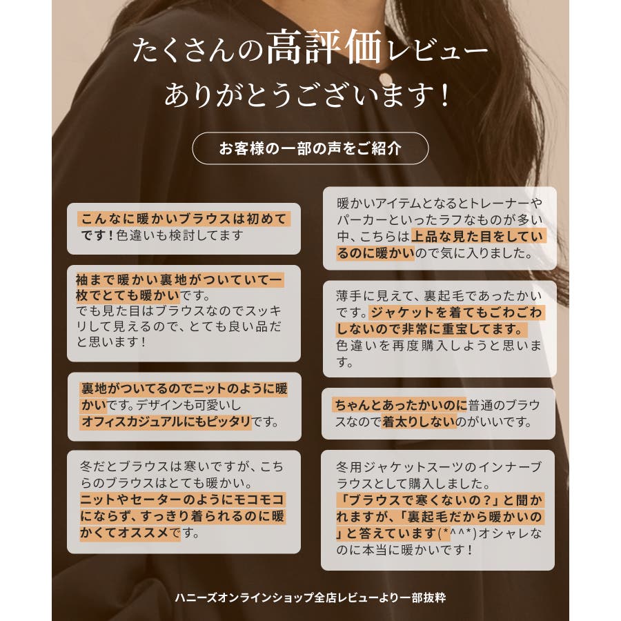 投稿日:2025.12.06スーツのジャケットの下に1枚できても温かいです。安っぽい感じもあまりありません。内側のフリース素材の、縫い目が肌がわにありますが、このブラウスの下にヒートテックをきれば気になりません。