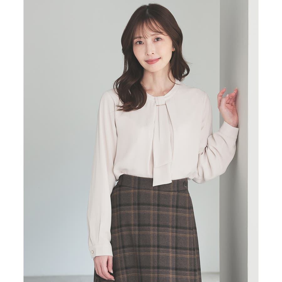 見た目は通常のブラウスながら、裏起毛素材の裏地付きで、透けにくく寒い時期でも暖かな『Warmブラウス』シリーズ。