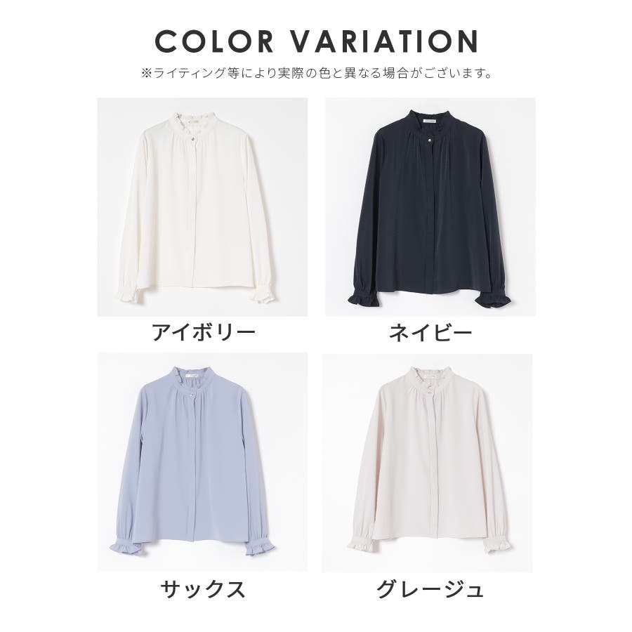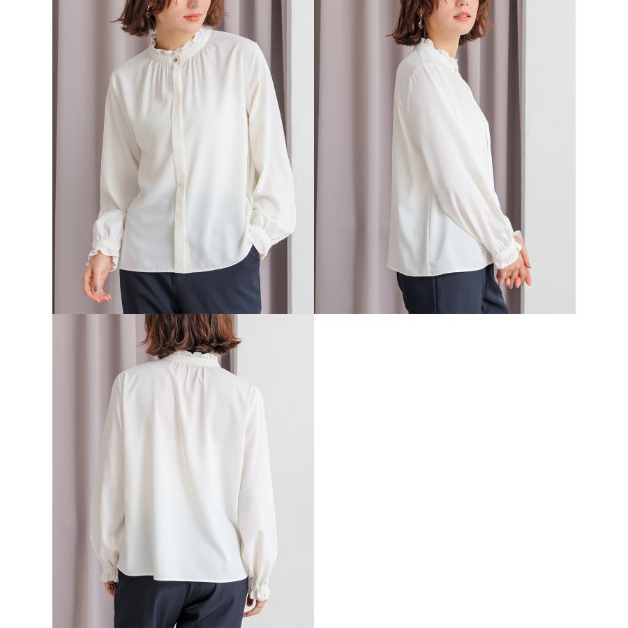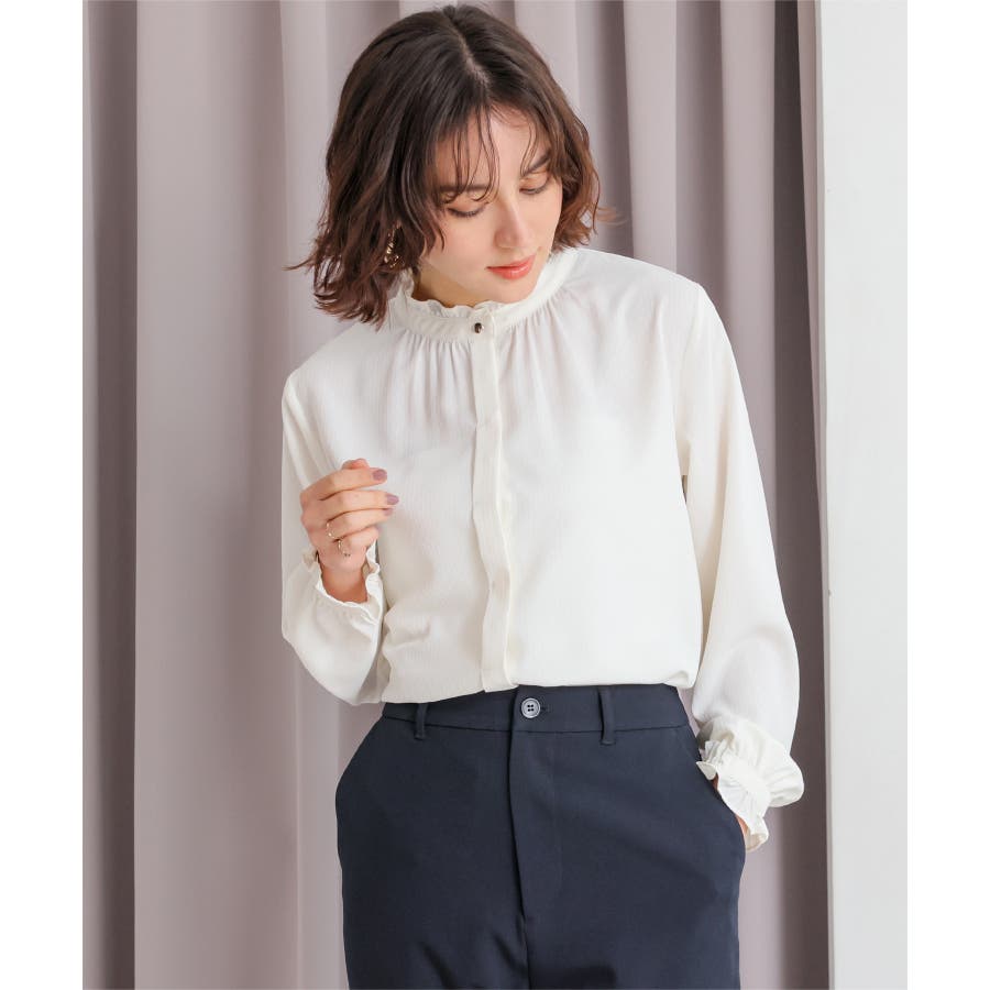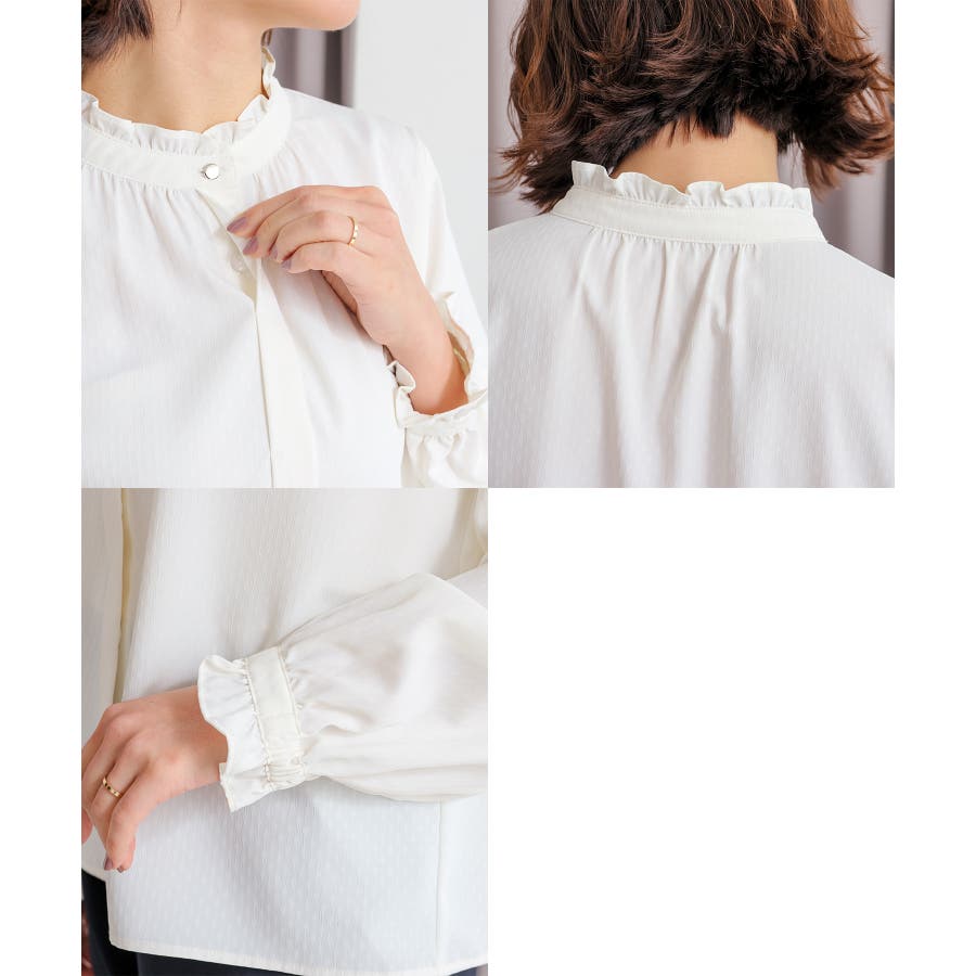 商品カテゴリ:5340610232 トップス ブラウス 長袖 スタンドネック フリル フロントボタン 比翼仕立て フェミニン オールシーズン 白 カテゴリ105010 tops ブラウス長袖 長そで ヒラヒラ 前ボタン 前開き 前釦 ボタン 織り柄入り 後袖口部分ゴム きれいめ 上品 可愛い おしゃれ 清楚 大人可愛い Sサイズ S 小さいサイズ Mサイズ Lサイズ LLサイズ LL 大きいサイズ FP601 大人 30代 40代 50代 60代 ミセス 大人カジュアル こなれ ママ 垢抜け シーズンオール 春 春物 春服 春夏 夏 夏物 夏服 秋 秋物 秋服 秋冬 冬 冬物 冬服 新作 新着 アイボリー ホワイト ネイビー 紺 ブルー 青 サックス グレージュ グレー 灰色 ベージュ 肌色 232 534-61-0232 5340610232 GLACIER lusso グラシアルッソ honeys ハニーズ レディースファッション ladies fashion 女性 女 レディース ファッション 女性服 服 婦人服 534061023231 スタンドフリルブラウス 価格3980