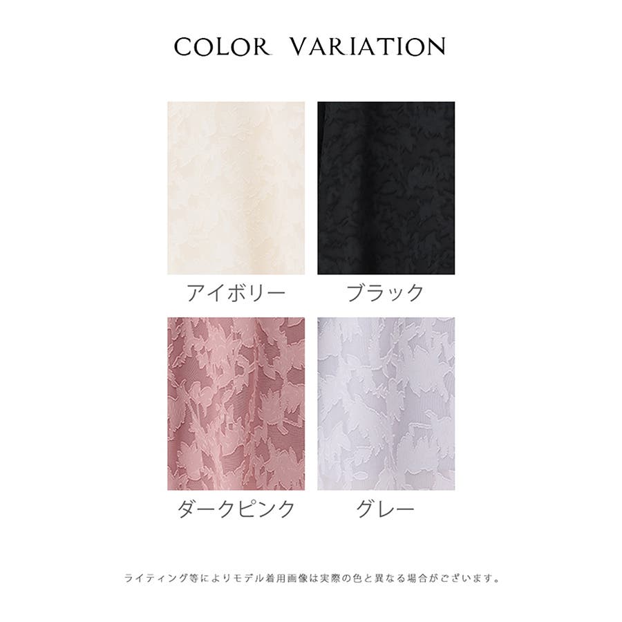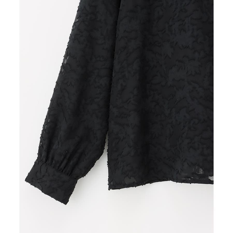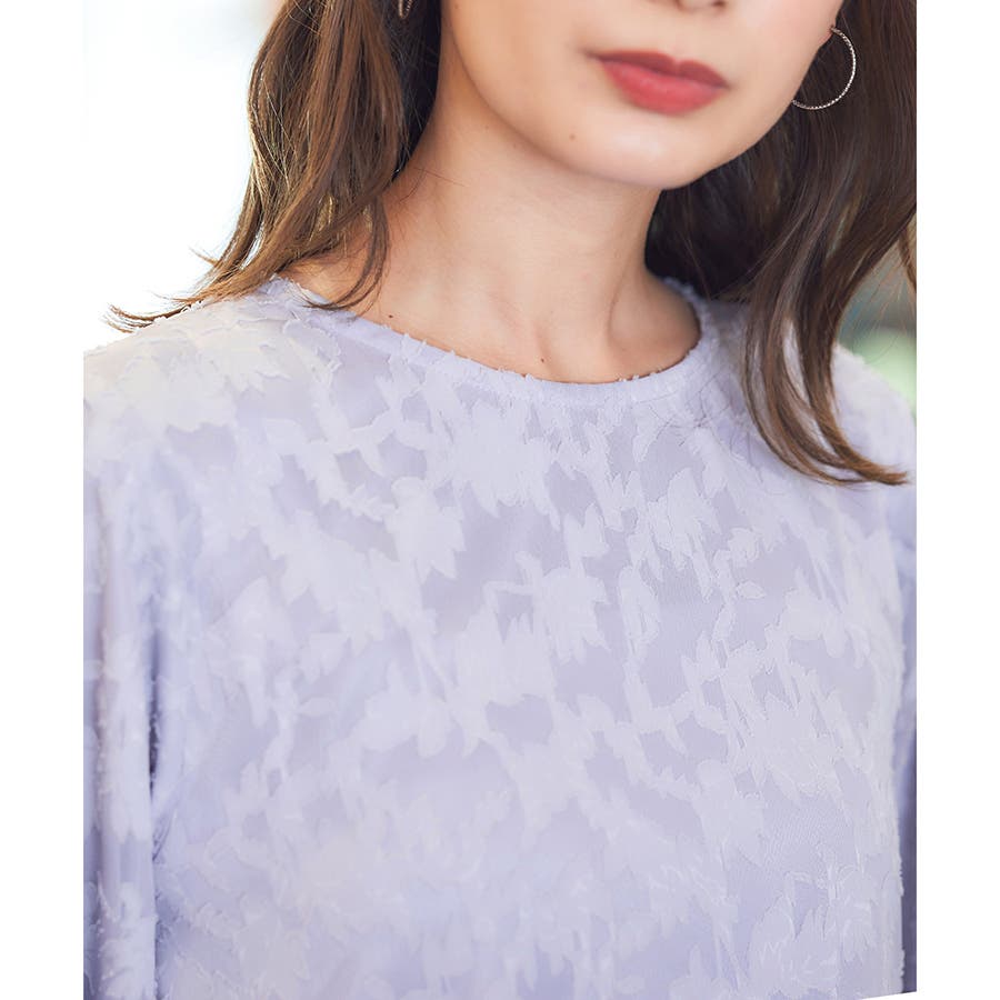 透け感のあるシフォンに立体感のあるカットジャカードの大きめ花柄を飾った上品素材。