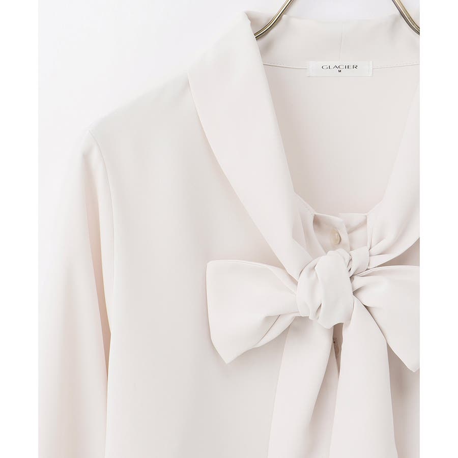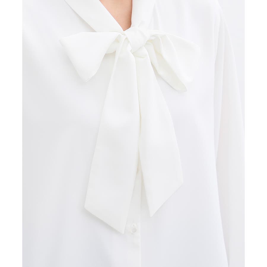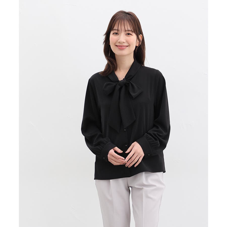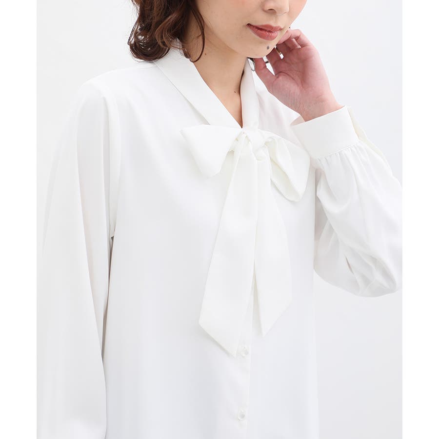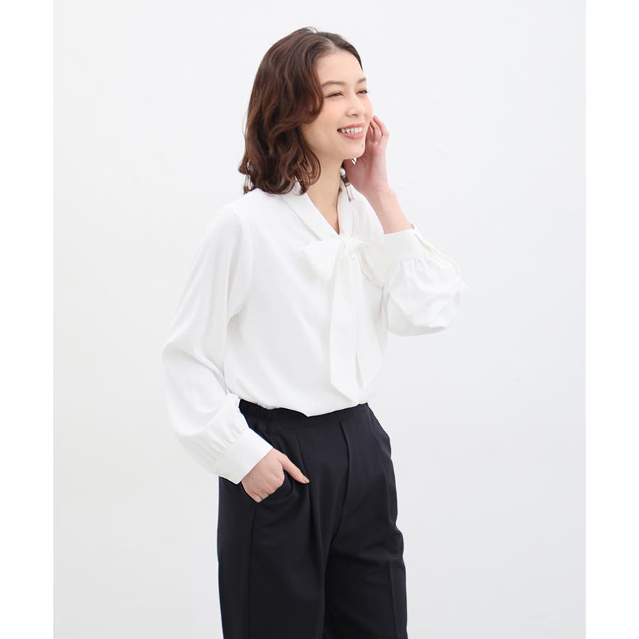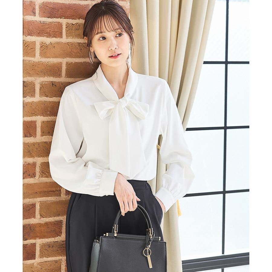 存在感があるボウタイリボンと、程よいボリューム袖がフェミニンなデザイン。