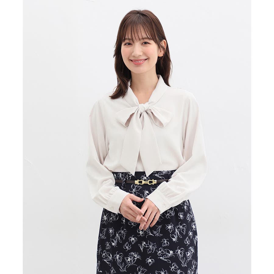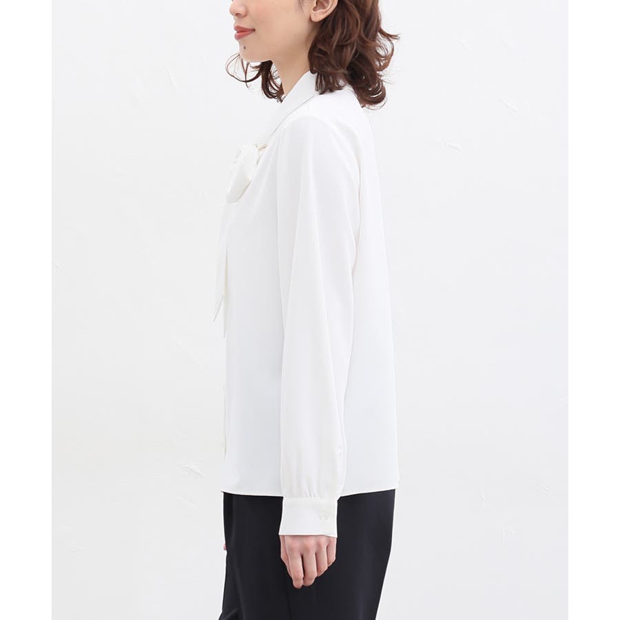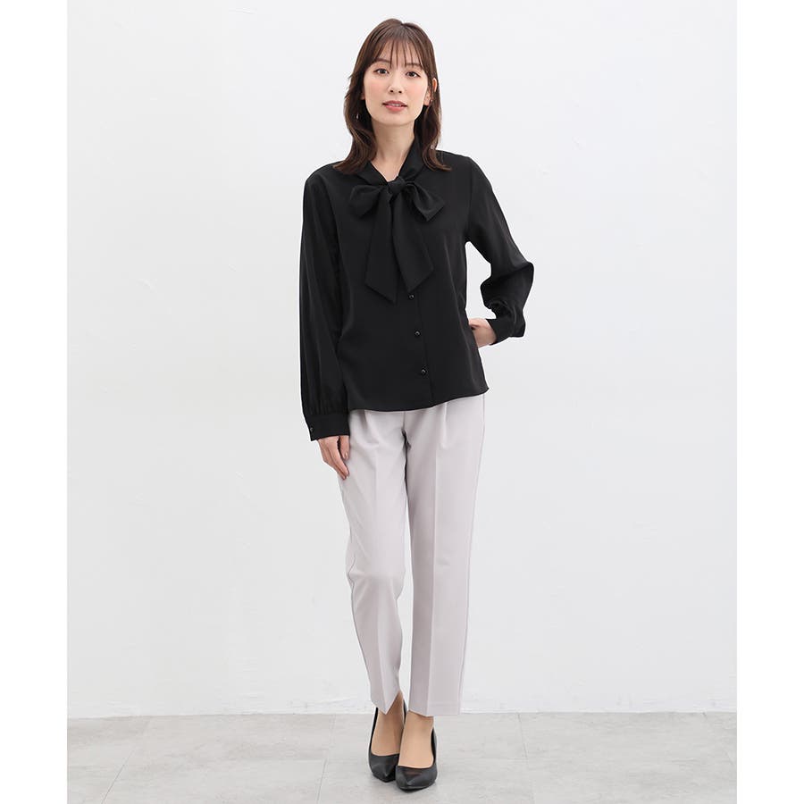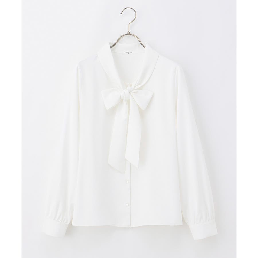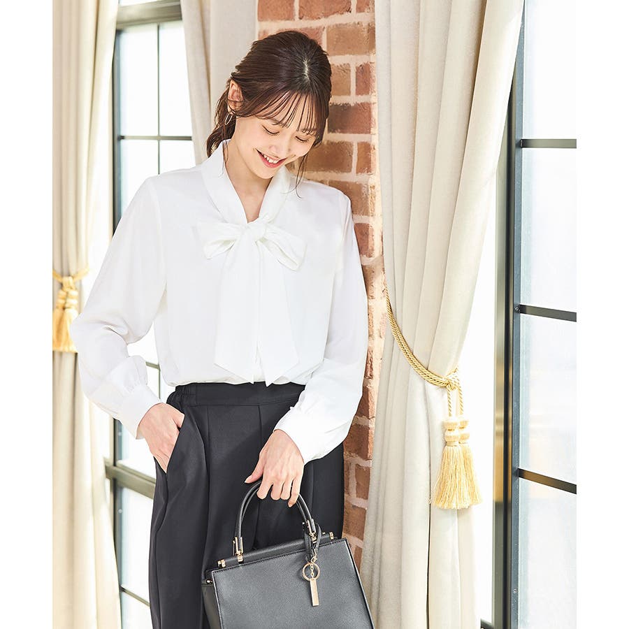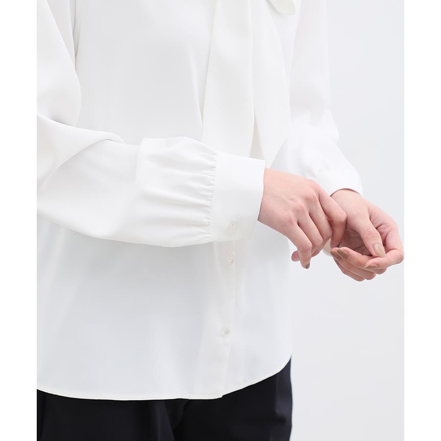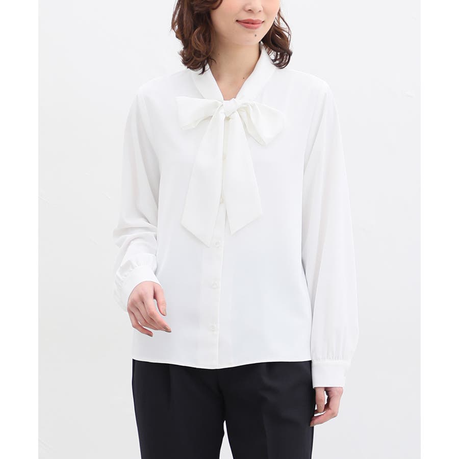 存在感があるボウタイリボンと、程よいボリューム袖がフェミニンなデザイン。