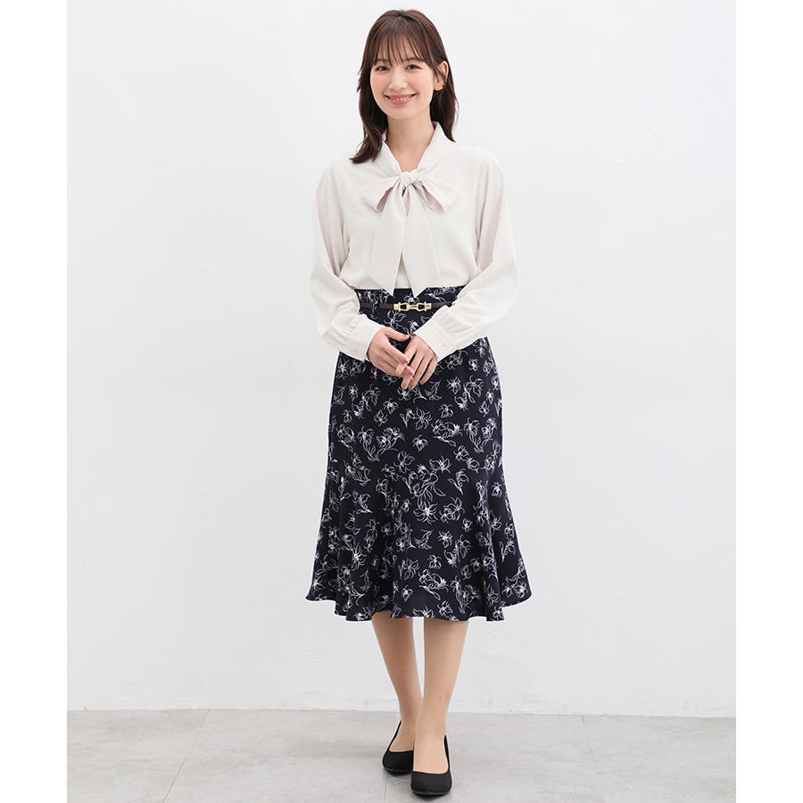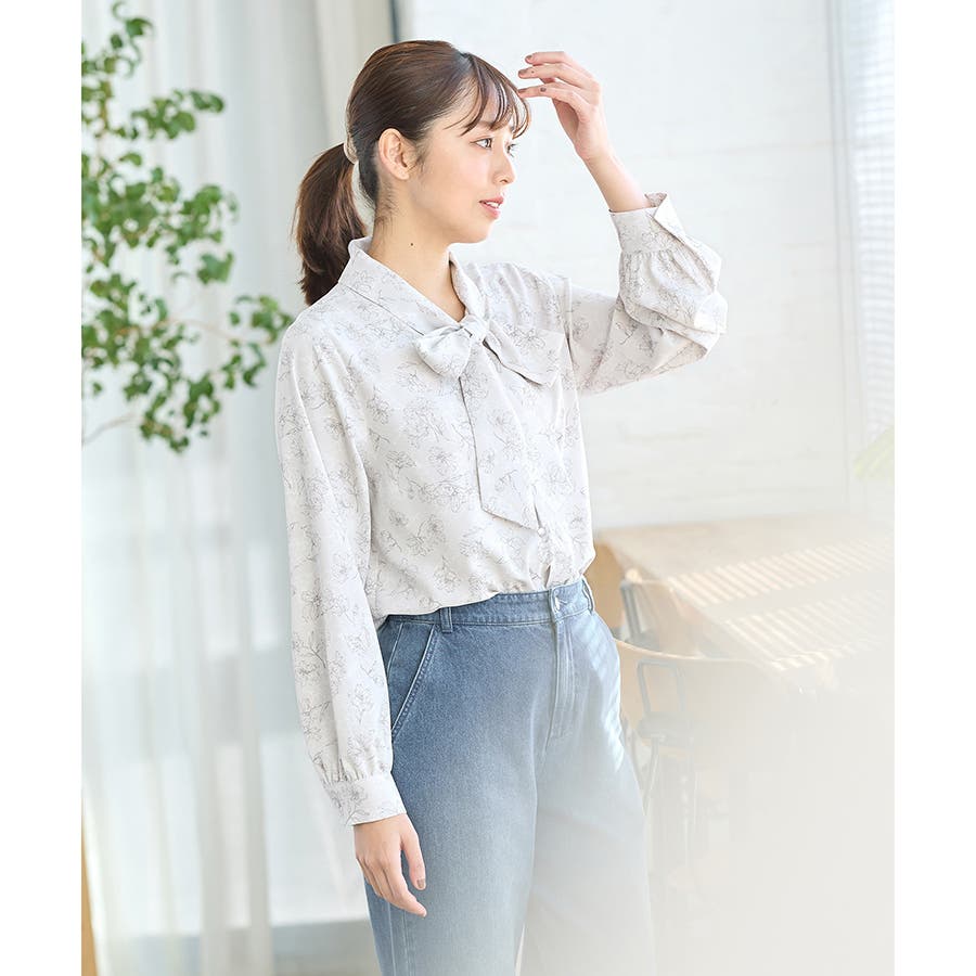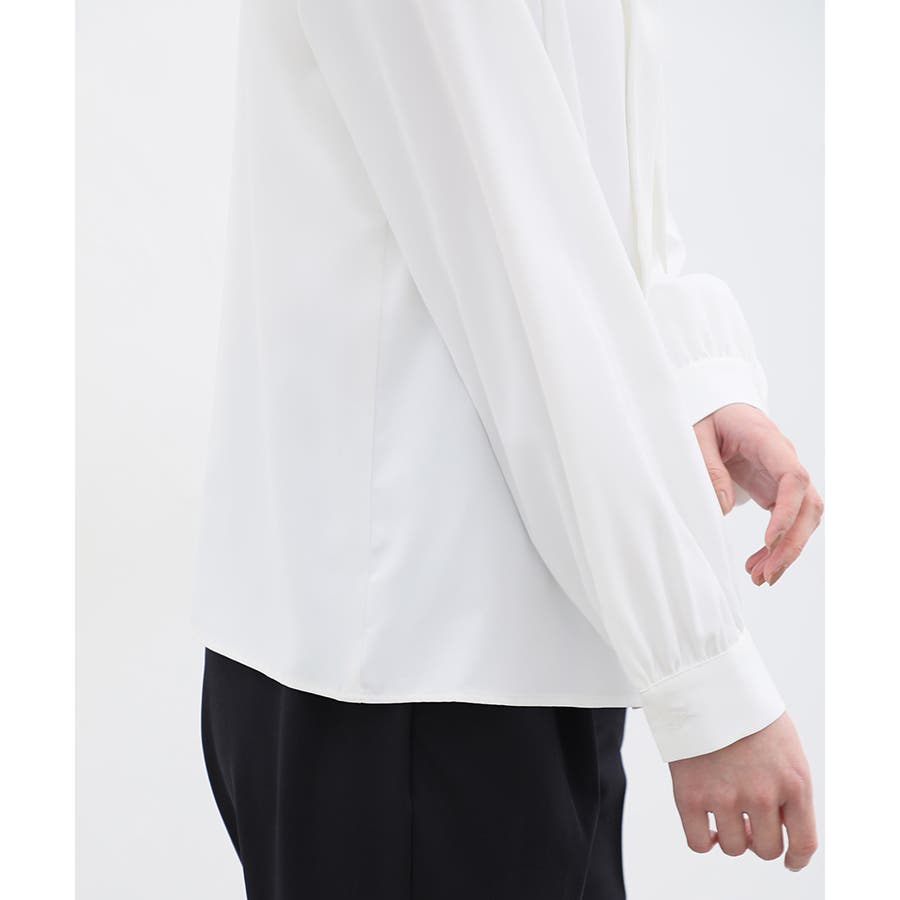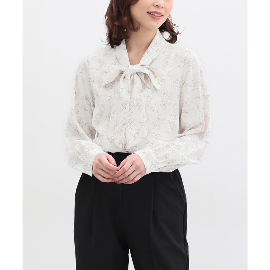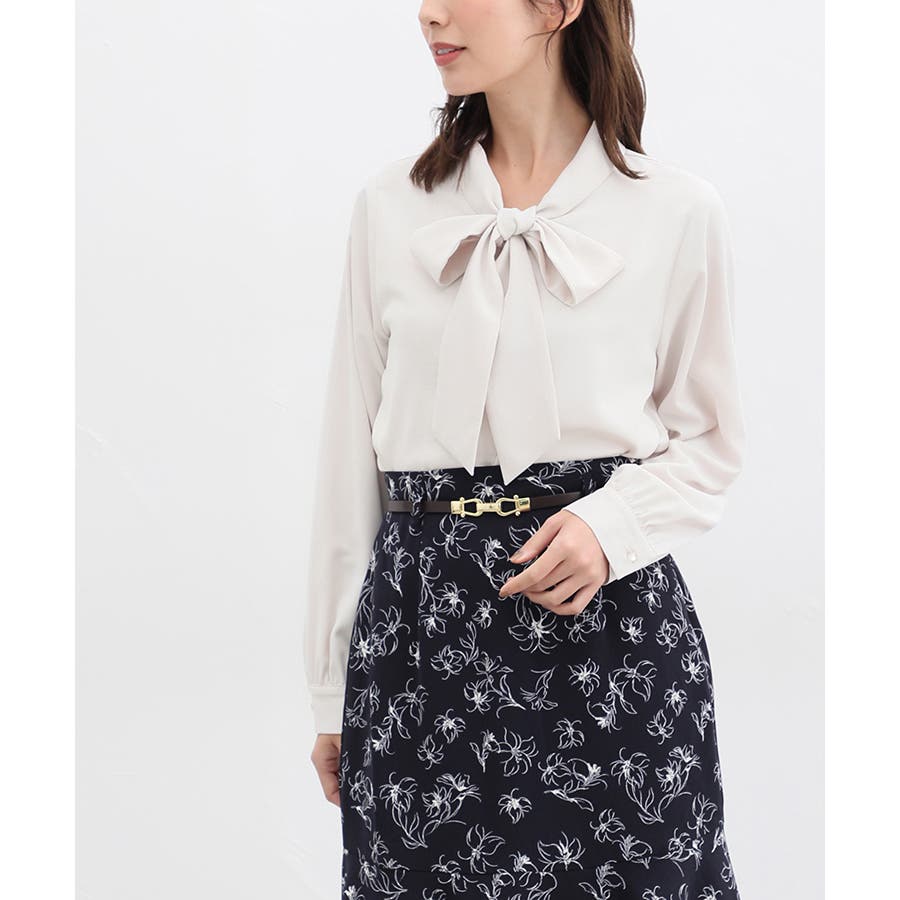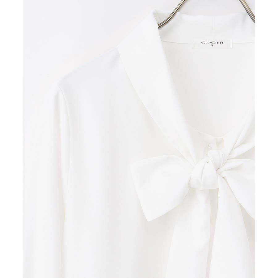 存在感があるボウタイリボンと、程よいボリューム袖がフェミニンなデザイン。