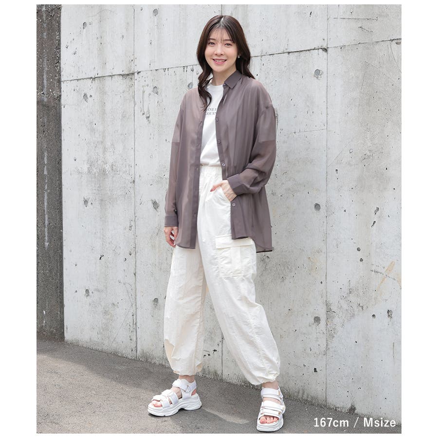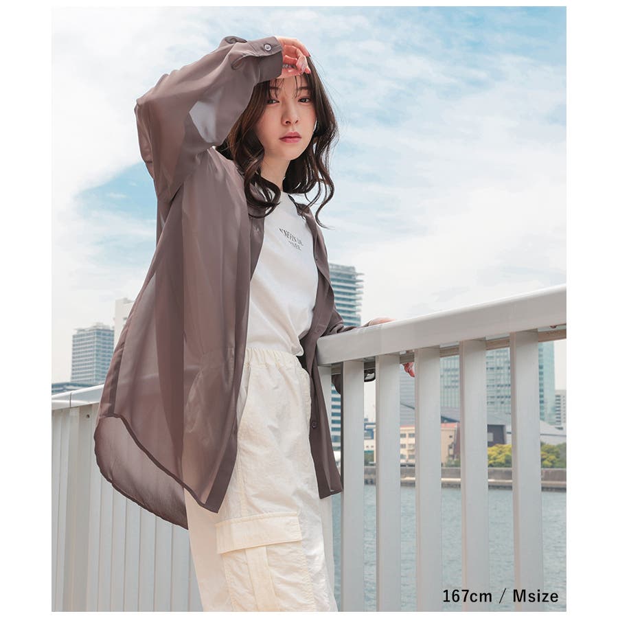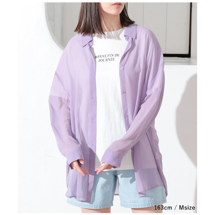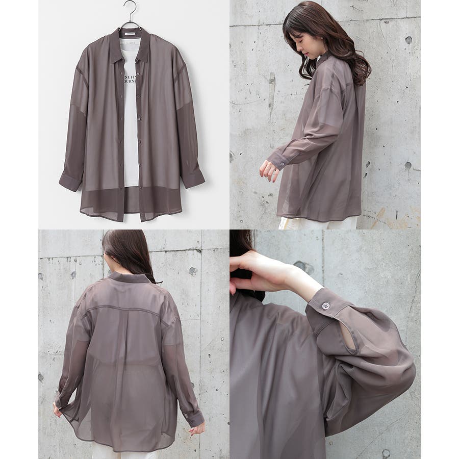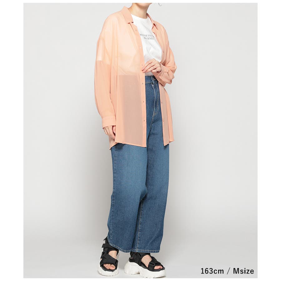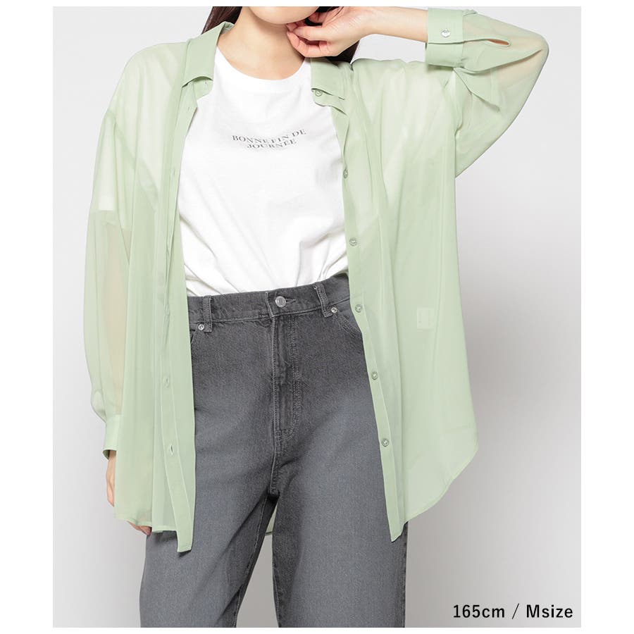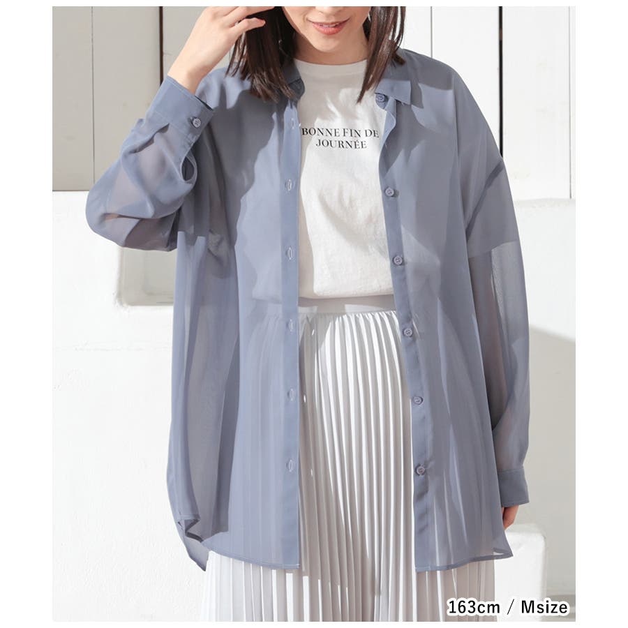 シアーシャツはバックにタックを入れたゆったり幅&ヒップがすっぽり隠れる丈感で、華奢見えも叶うシルエット。