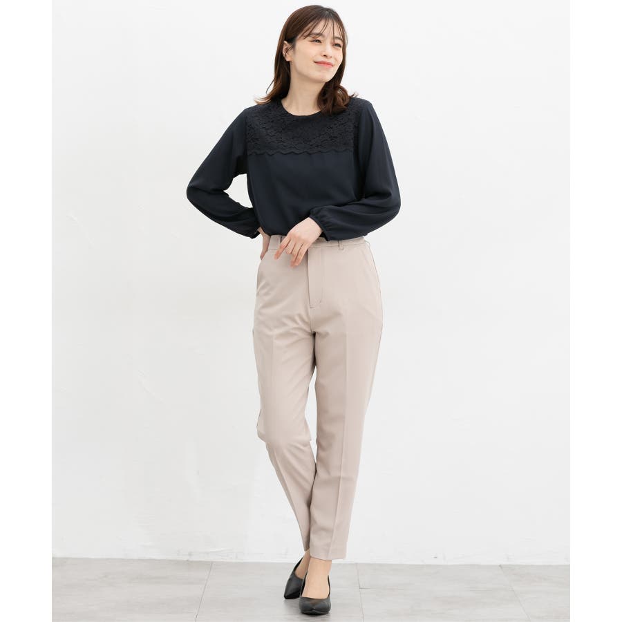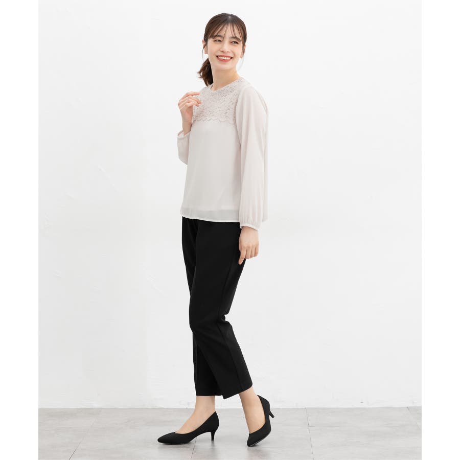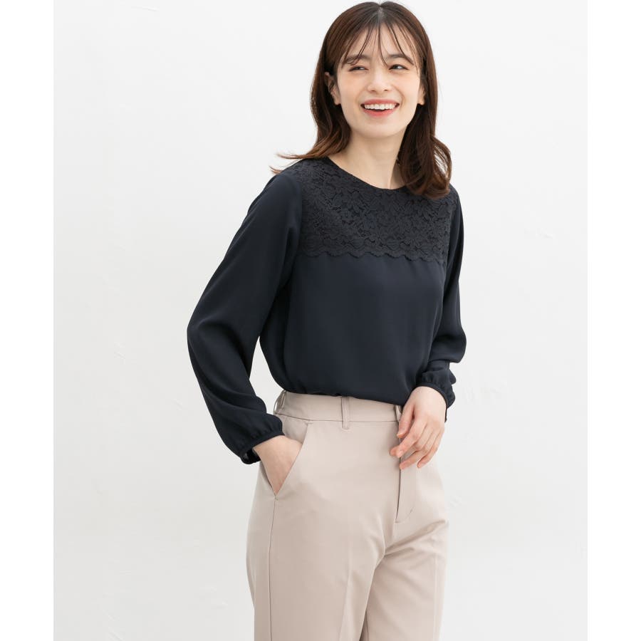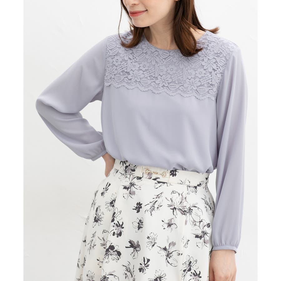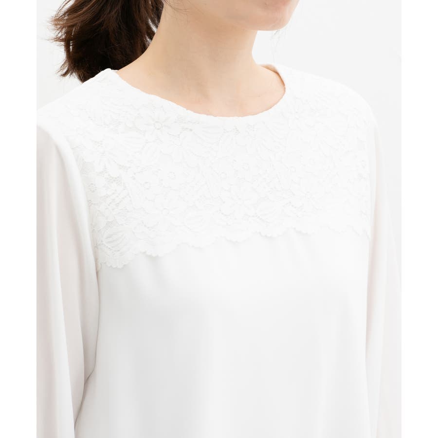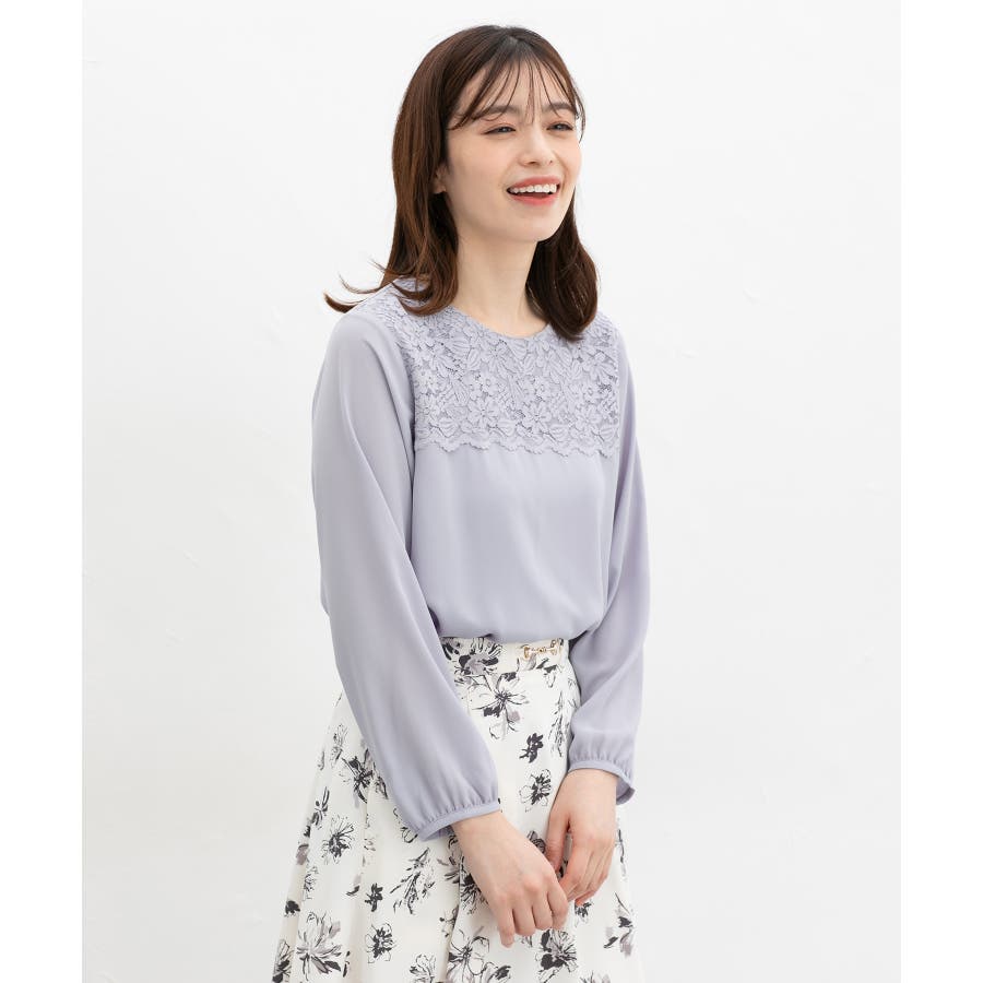 胸元をレースで切り替えた、1枚でスタイリングがぐっと華やかに着映えるデザイン。