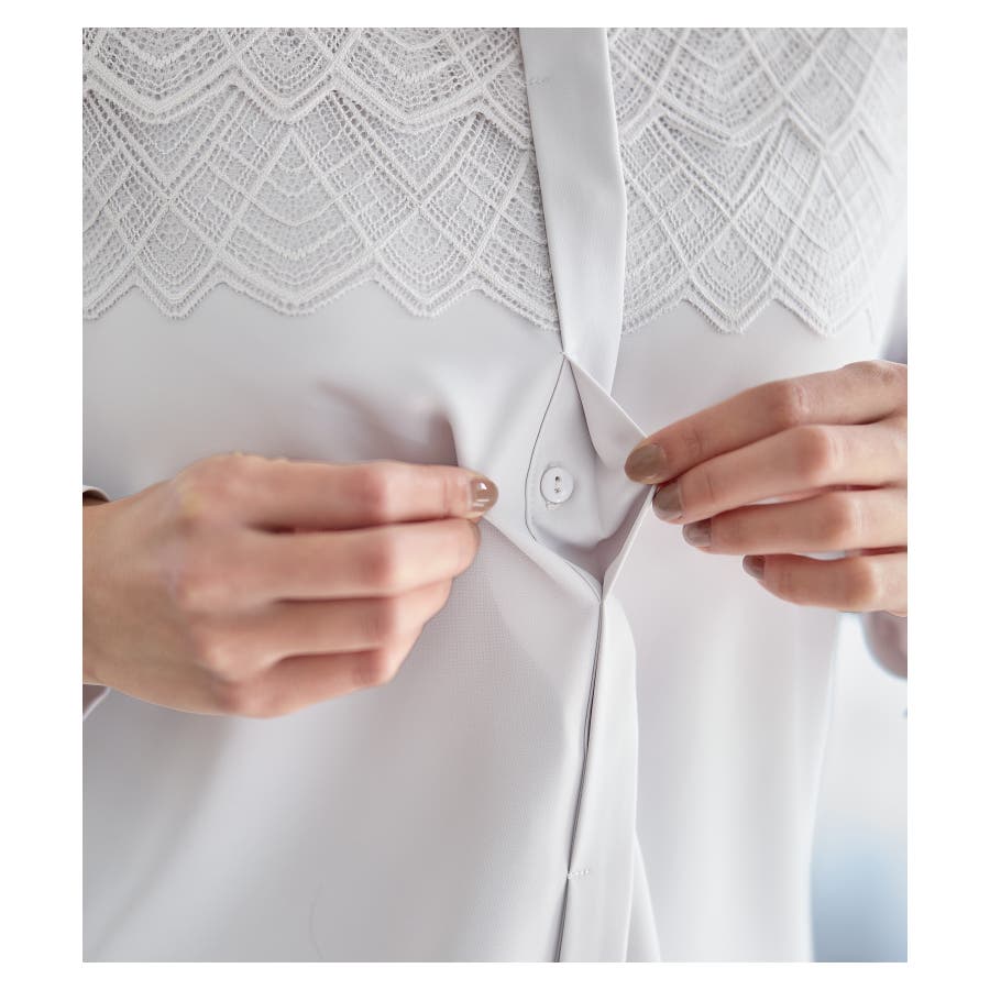 胸元をレースで切り替えた、1枚でスタイリングがぐっと華やかに着映えるデザイン。