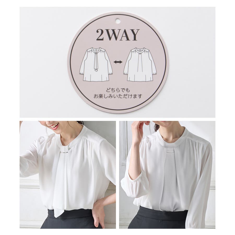 ボウタイを内側に隠してスタンドカラーにもできる2way仕様。