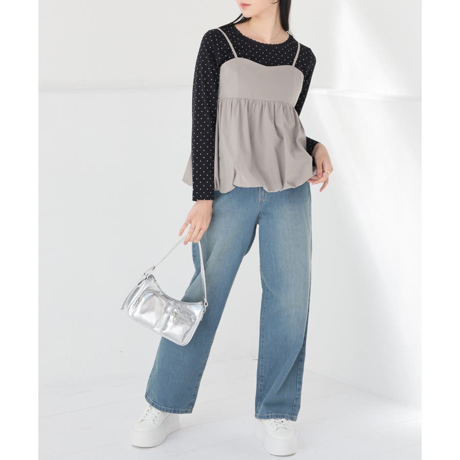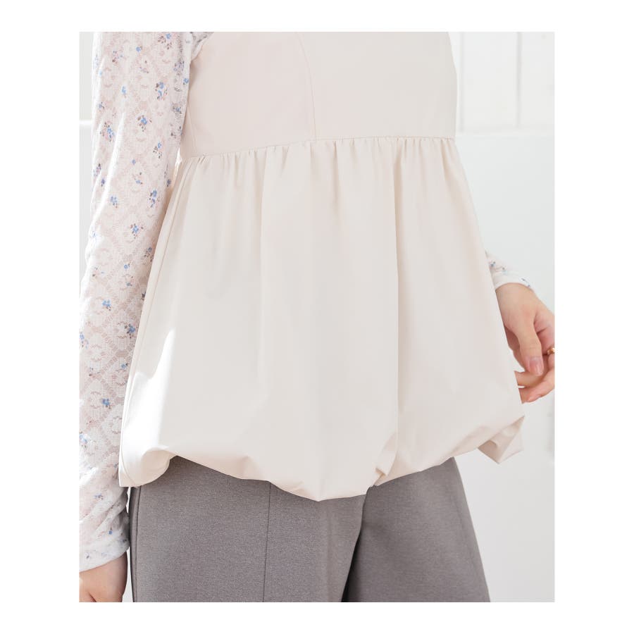高めの切り替え位置から広がるふんわりバルーンシルエットの、トレンドライクなデザイン。