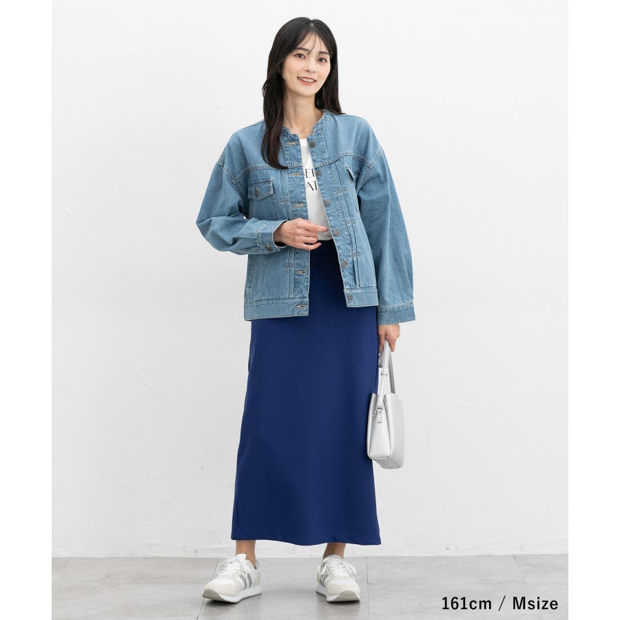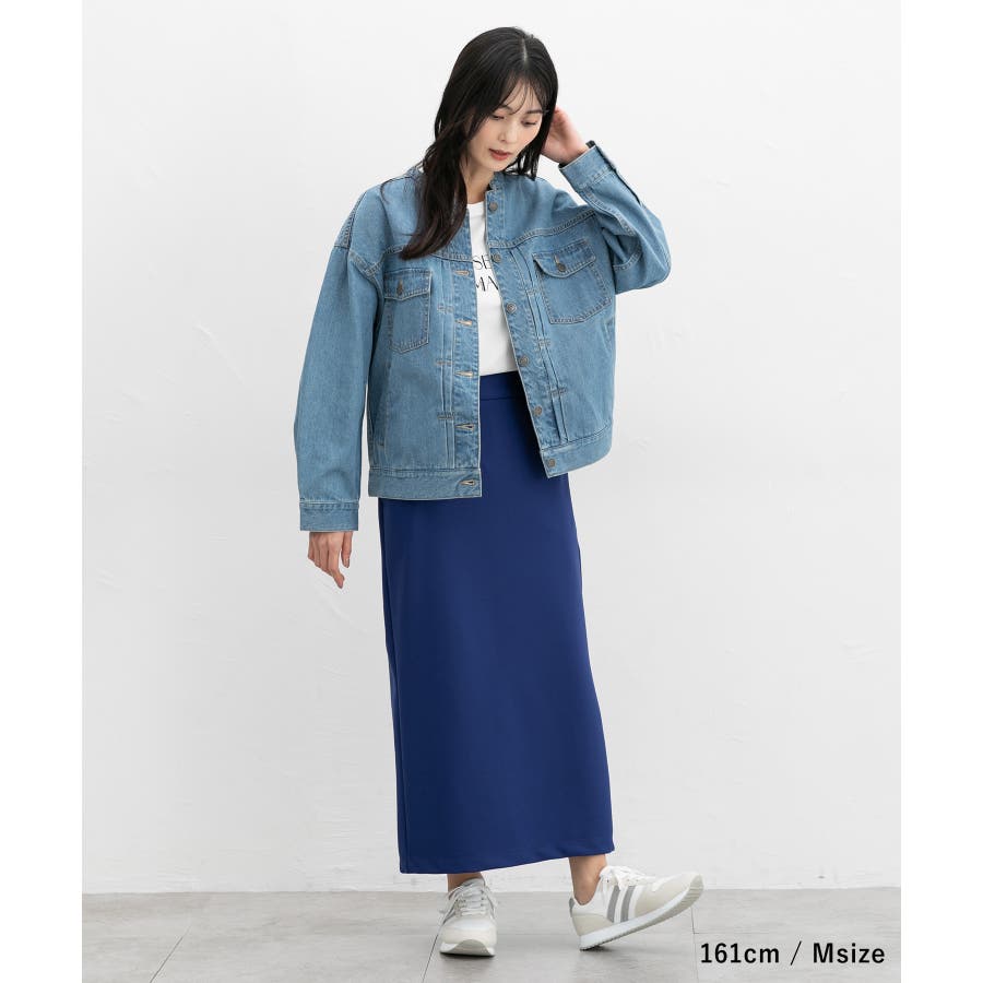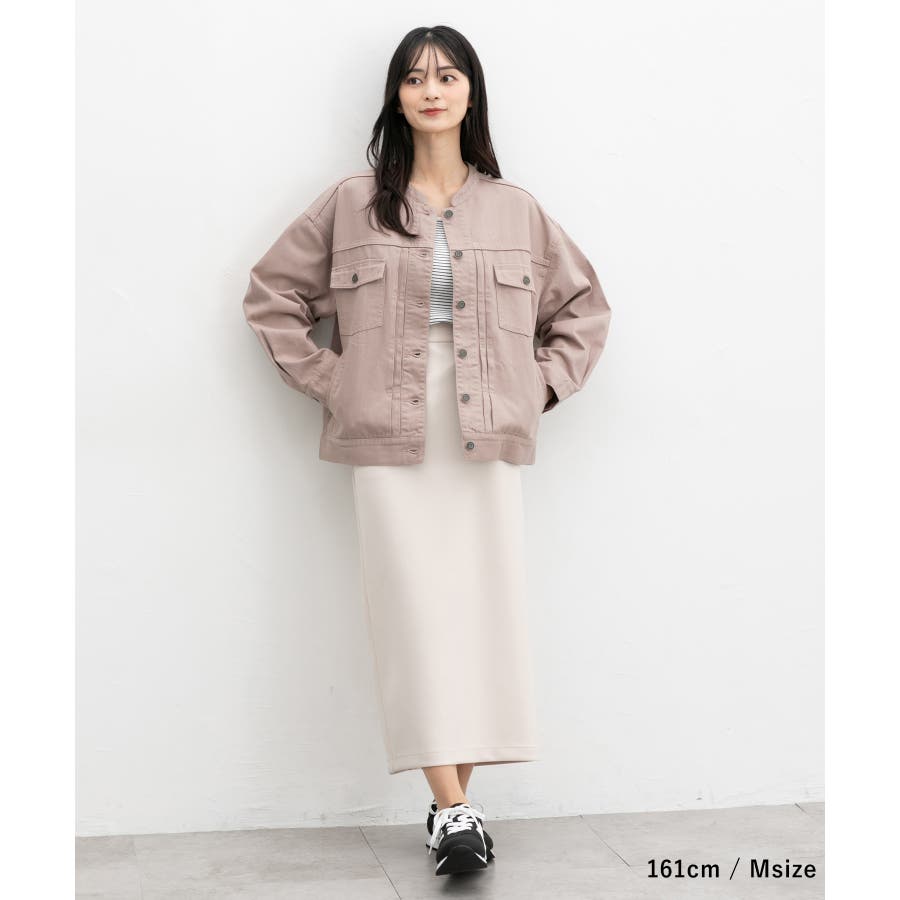 ボリュームのあるトップスにも羽織りやすい、肩周りがストンと落ちるゆったりシルエット。