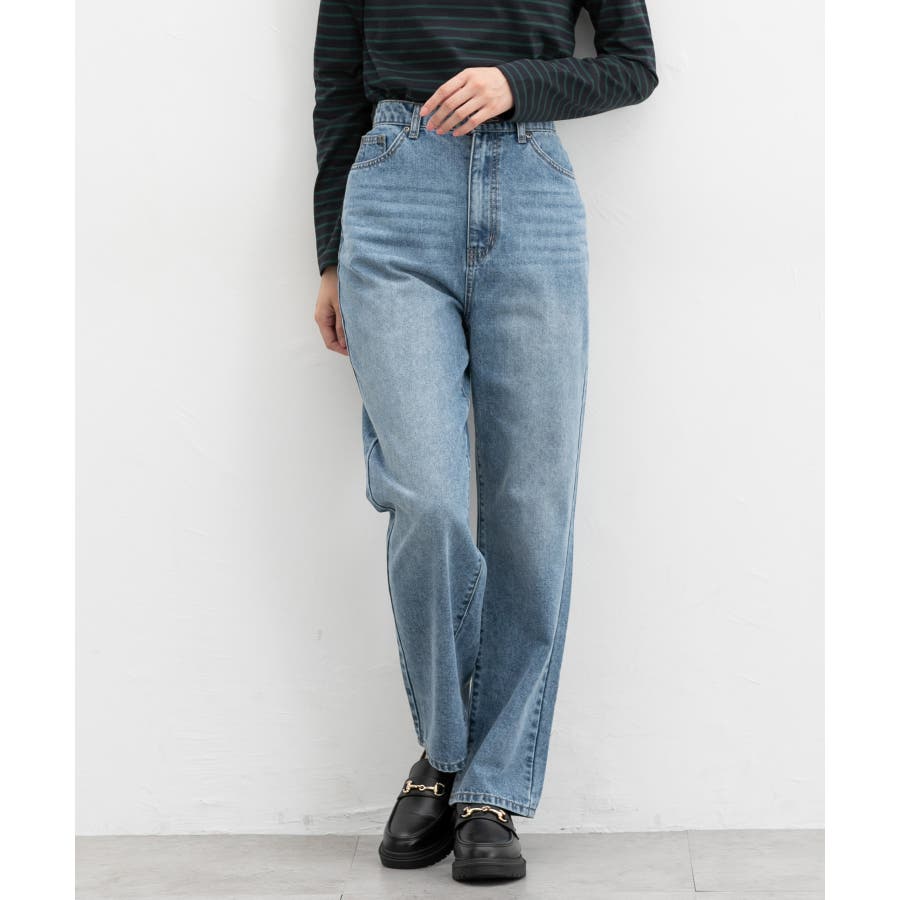 太すぎないシルエットのデニムストレート、股下66cmタイプ。