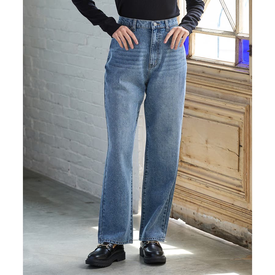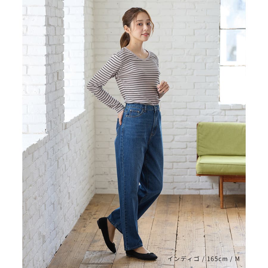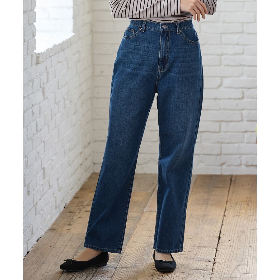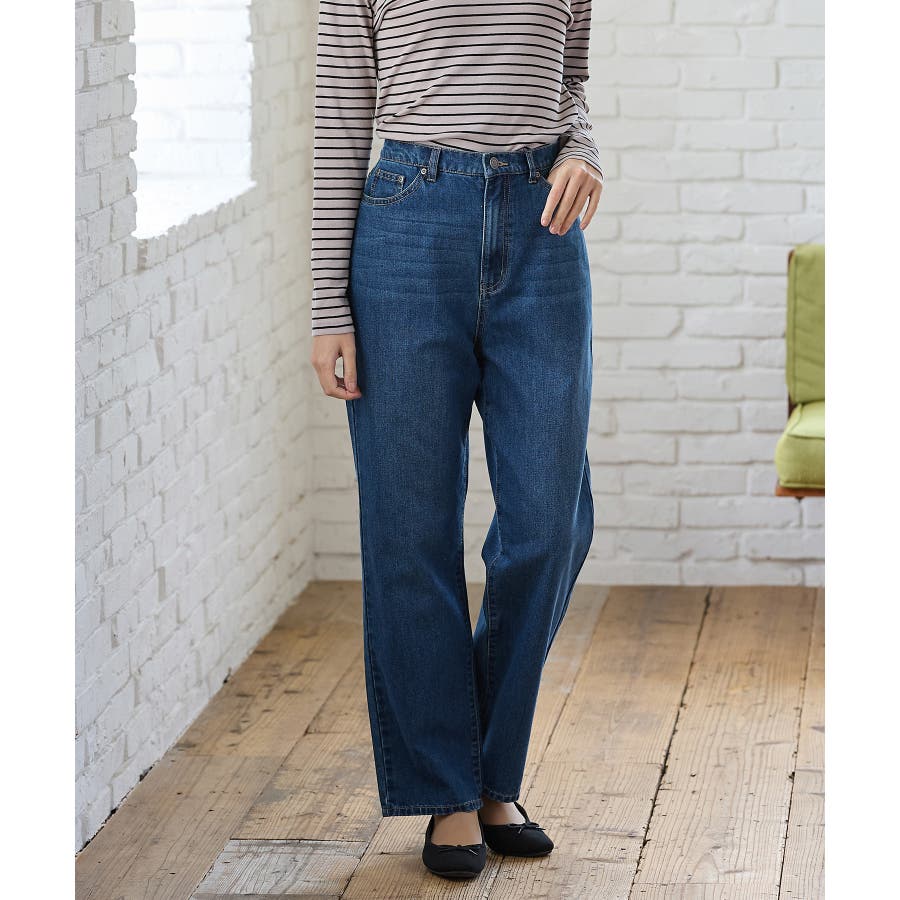 太すぎないシルエットのデニムストレート、股下70cmタイプ。