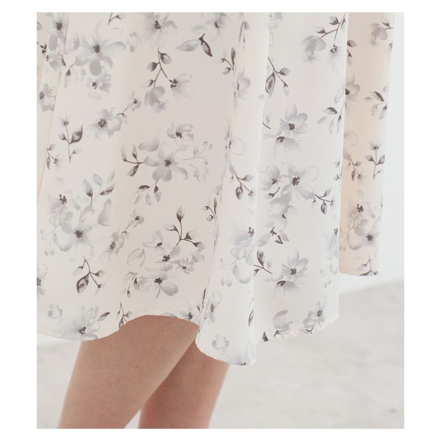 シックなカラーの総柄とふんわりフレアシルエットが上品なデザイン。