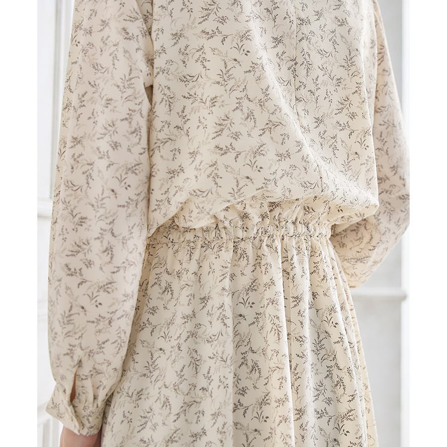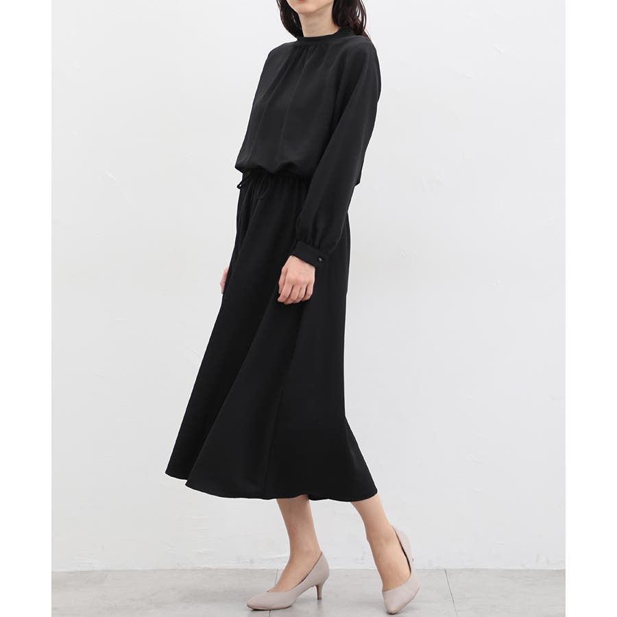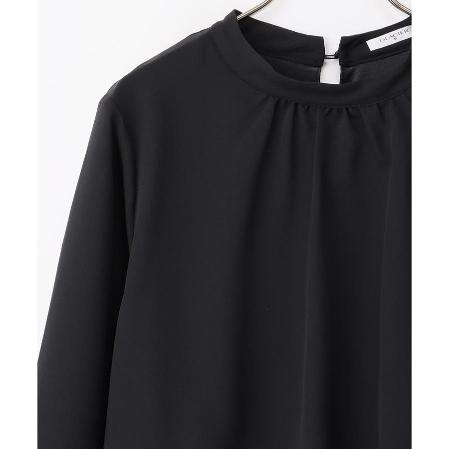 シンプルなプチハイネックに控えめなボリューム袖の、クラシカルで上品なデザイン。
