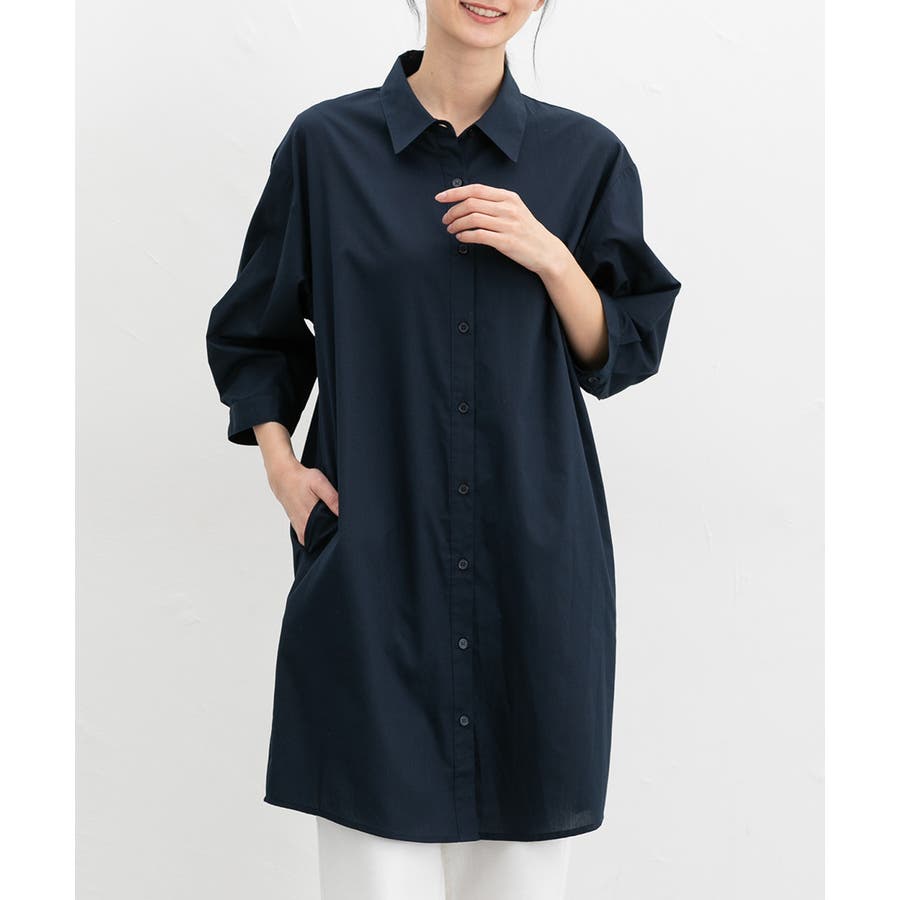 【ネイビー】ワンピース シャツワンピース ロング丈