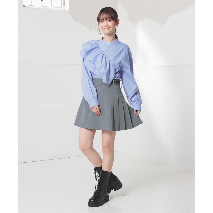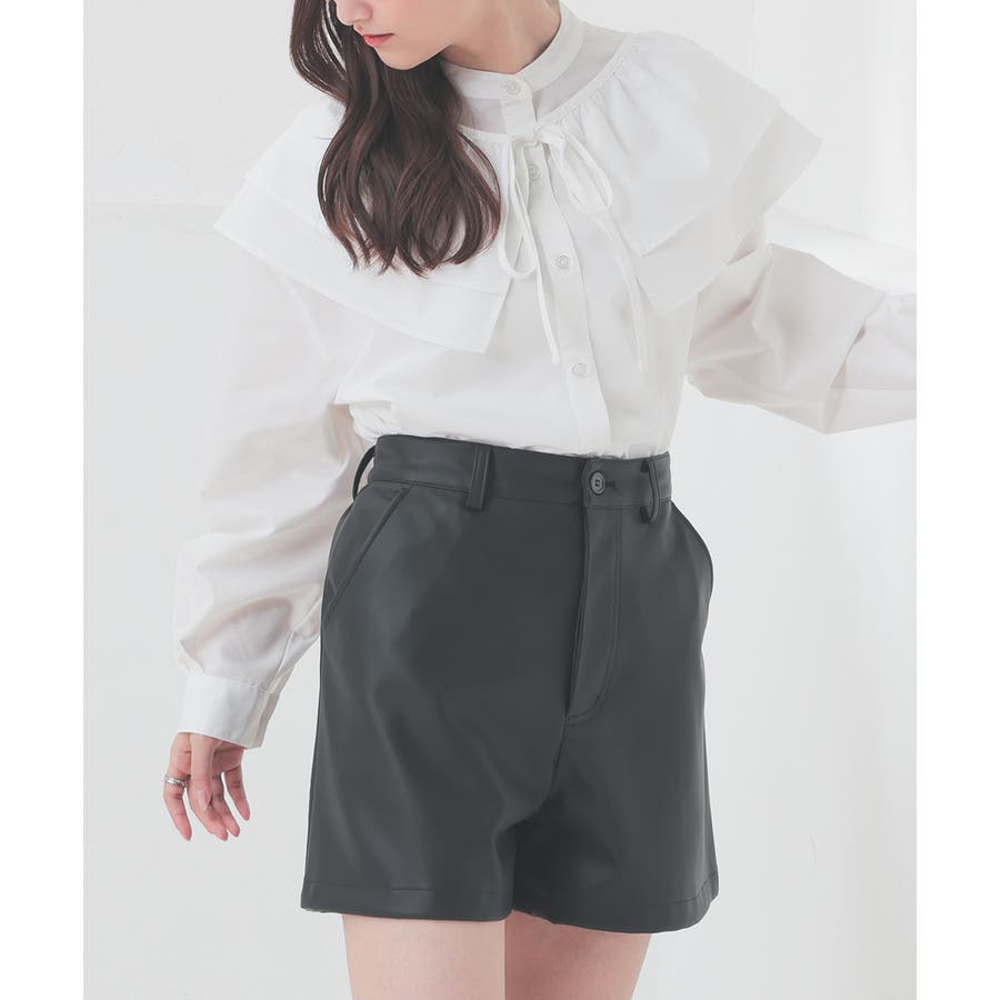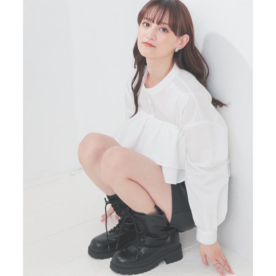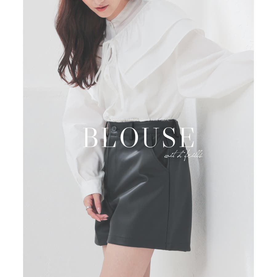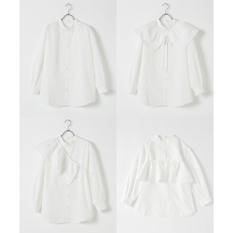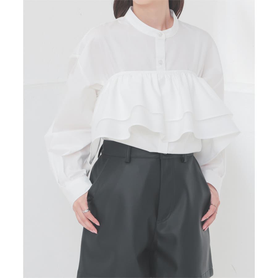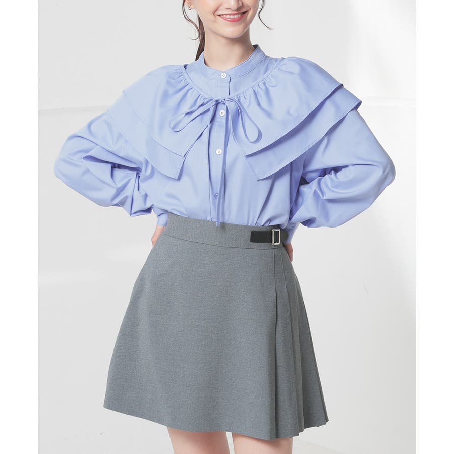 バンドカラーに着け外しできるフリルが付いたトレンドライクなデザイン。