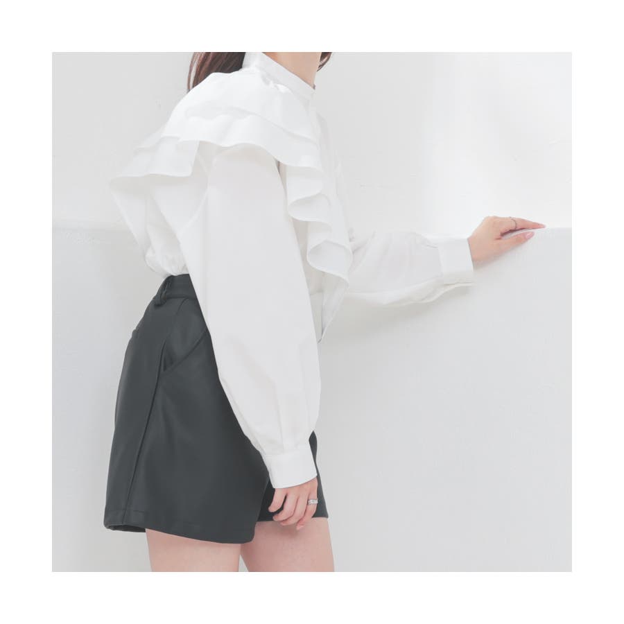 シンプルなブラウスとしてはもちろん、衿、たすき掛け、ビスチェ風と3wayで使えるフリルをプラスすれば華やかな旬コーデに♪