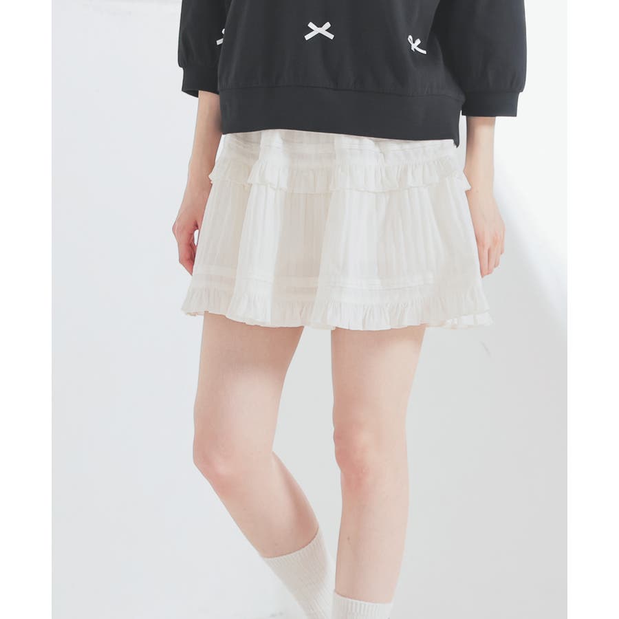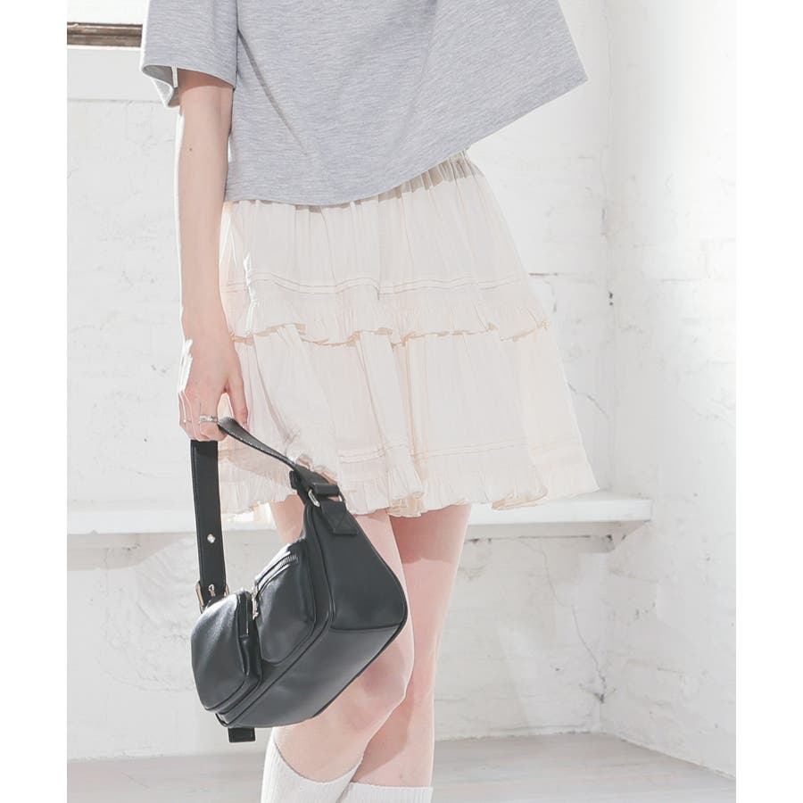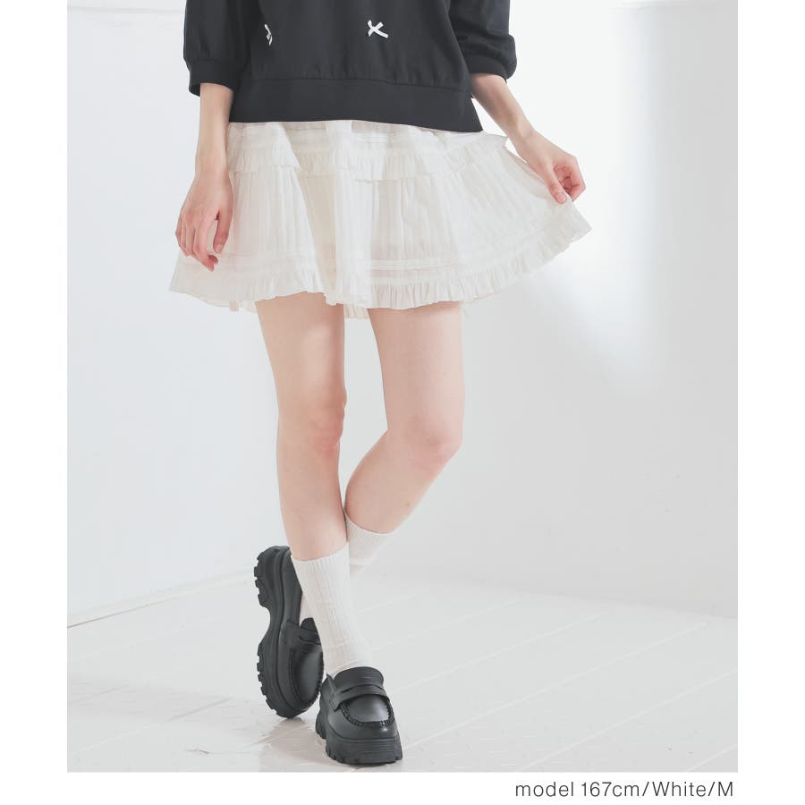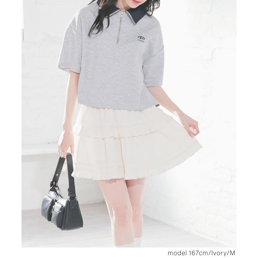 二段重ねのティアードにフリルをプラスしたガーリーなデザイン。