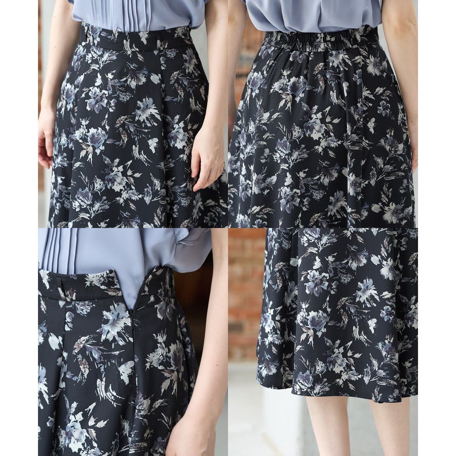 シックなカラーの総柄とふんわりフレアが上品なデザイン。