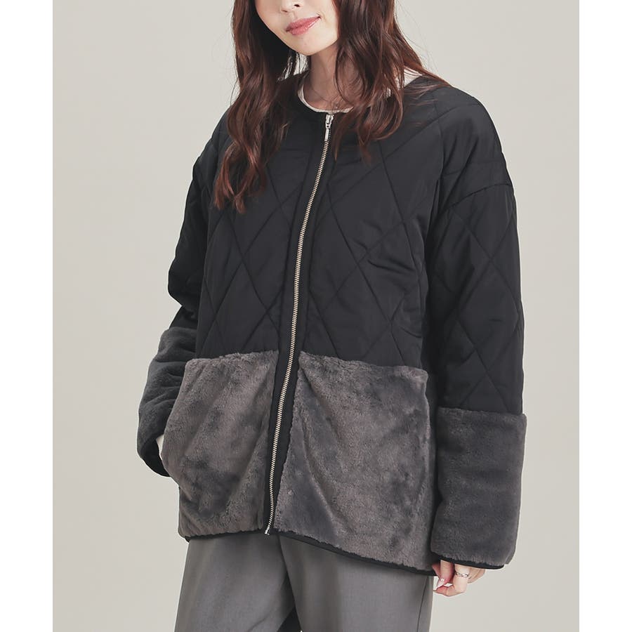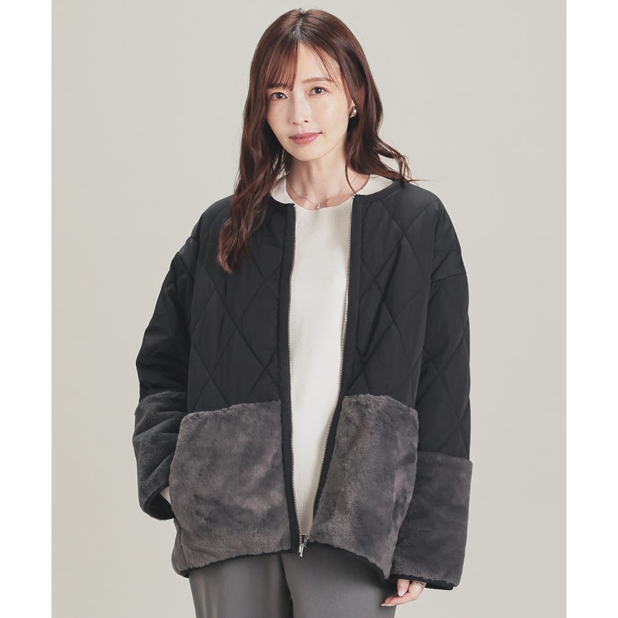 商品カテゴリ:5570438519 アウター ジャンパー ブルゾン ジャケット フェイクファー ダイヤ柄キルト ノーカラー 裏地付き 中綿 フェミニン 冬 黒 カテゴリ401000 outer jacket 上着 もこもこ ふわふわ あったか 衿なし カラーレス 裏地 透けない 裏地あり 防寒 後ろ下がり 前後差 前後差ヘム カジュアル 大人可愛い フェミカジュ おしゃれ 大人カジュアル Sサイズ S 小さいサイズ Mサイズ Lサイズ LLサイズ LL 大きいサイズ FP601 大人 30代 40代 50代 60代 ミセス きれいめ こなれ ママ 垢抜け シーズン冬 冬物 冬服 冬春 初春 春 春物 春服 新作 新着 ブラック グレージュ グレー 灰色 ベージュ 肌色 ブラウン 茶色 8519 557-43-8519 5570438519 GLACIER lusso グラシアルッソ honeys ハニーズ レディースファッション ladies fashion 女性 女 レディース ファッション 女性服 服 婦人服 557043851932 ファー切替ブルゾン 価格7900