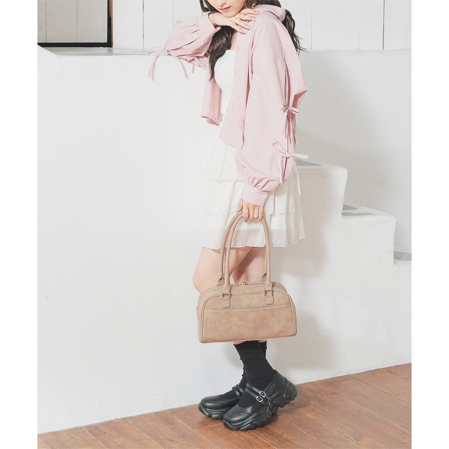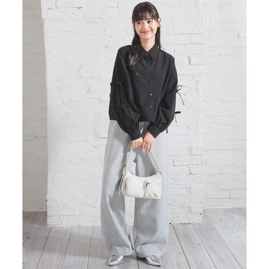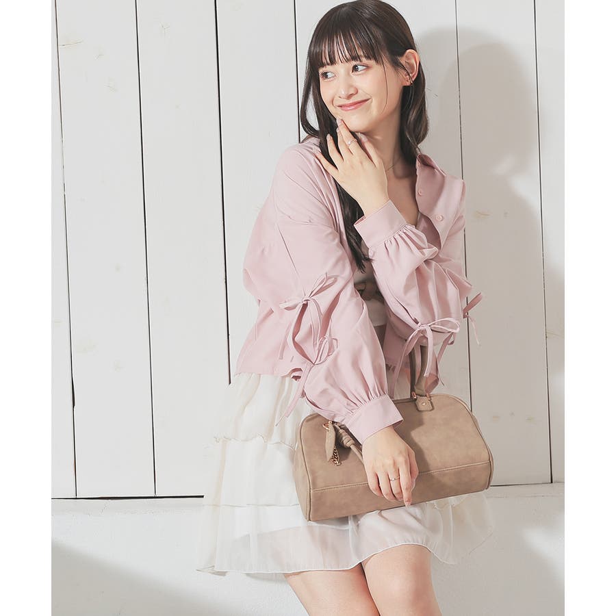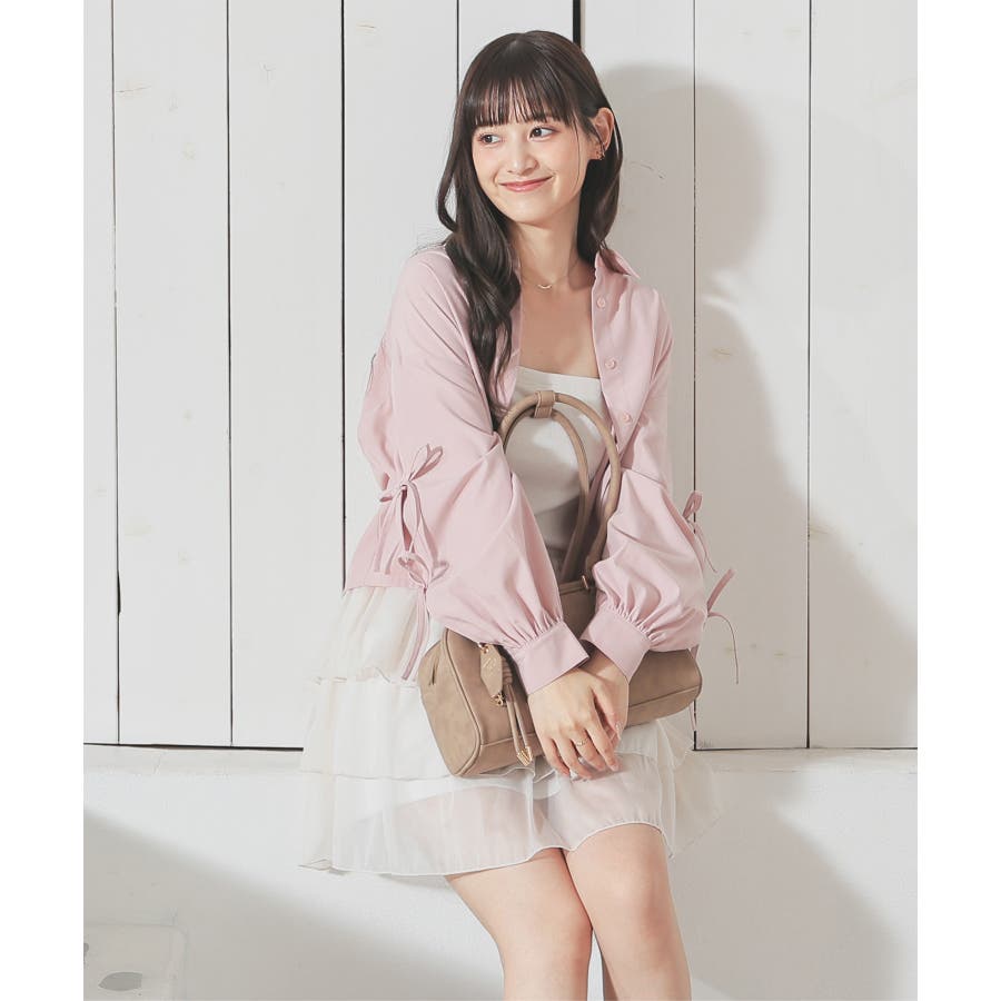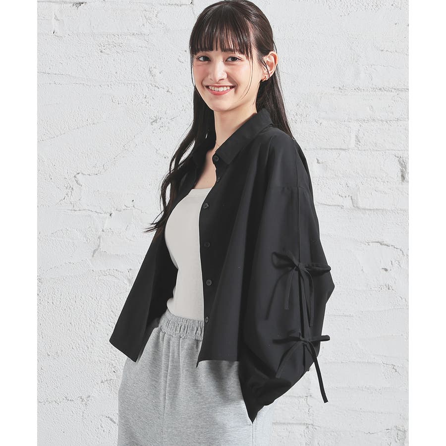 シンプルなレギュラーカラーに袖のリボンがキュートなデザイン。