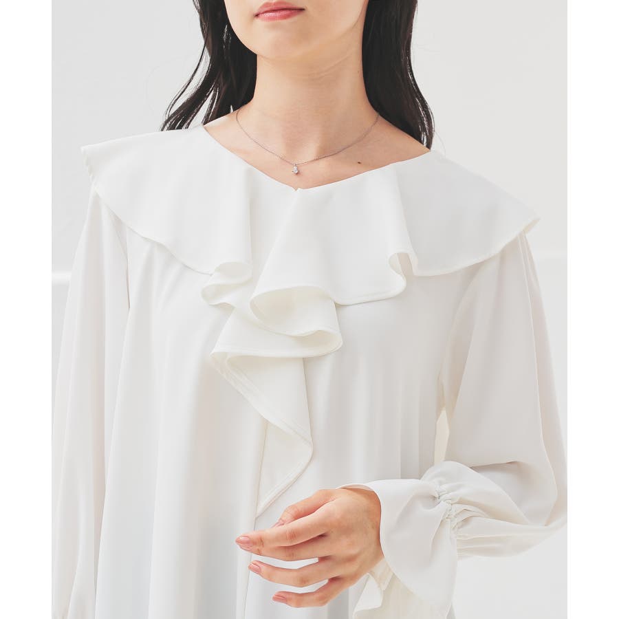 大きめのラッフルフリルがフェミニンで華やかなデザイン。