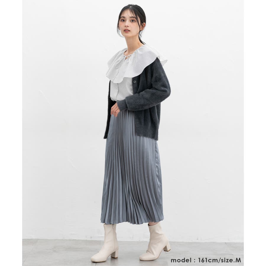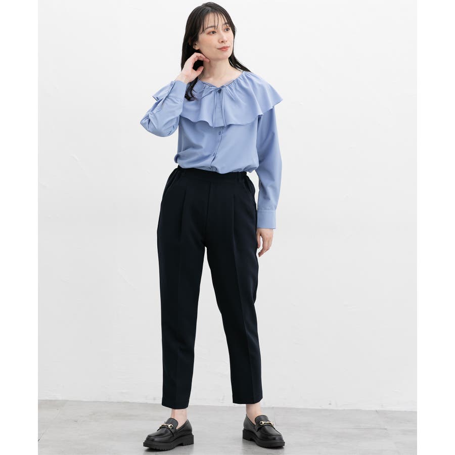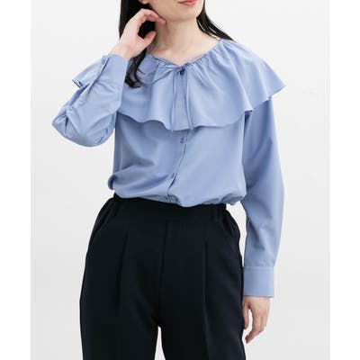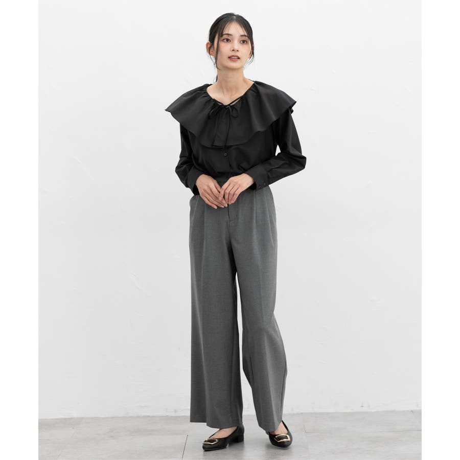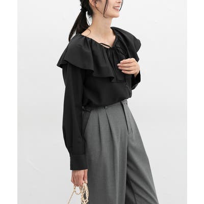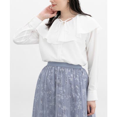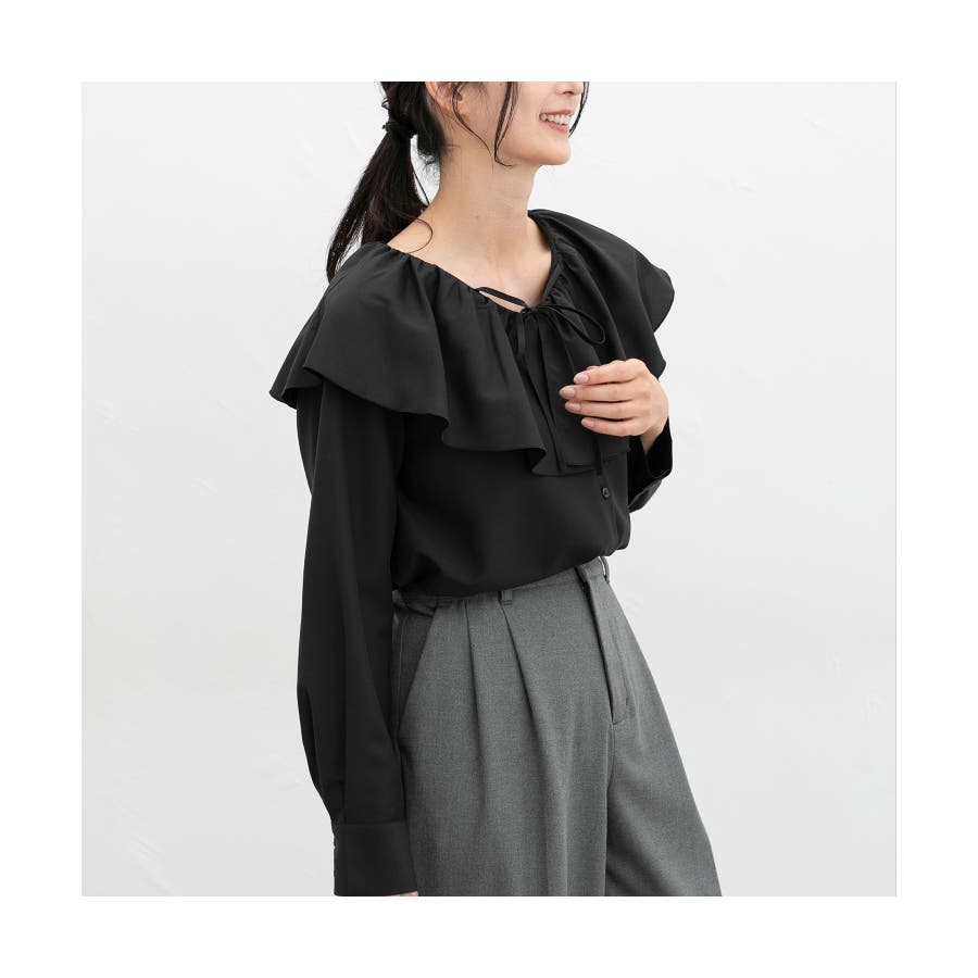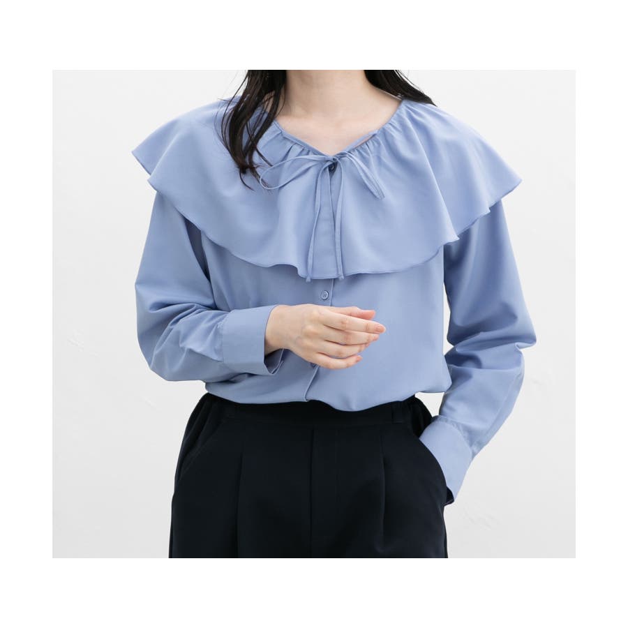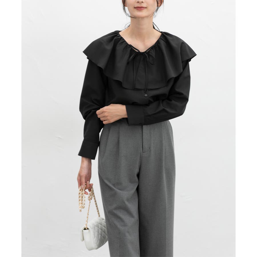顔周りを華やかにする大きめフリル衿がトレンドライクなデザイン。