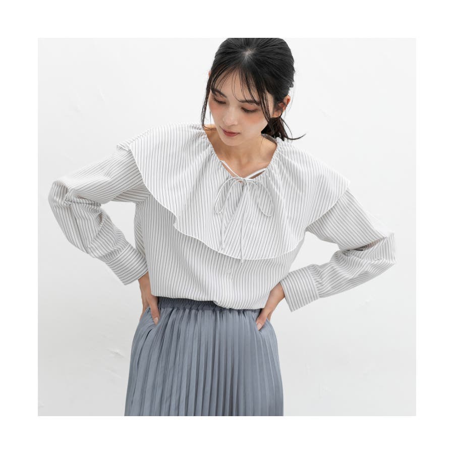 商品カテゴリ:5570619801 トップス ブラウス 長袖 フリルカラー リボン フェミニン ギャザー 無地 ストライプ柄 オールシーズン 白 黒 カテゴリ105010 tops ブラウス長袖 長そで えり 衿 襟 えりつき フリル衿 フリル 襟付きビッグカラー 衿付き きれいめ 上品 可愛い おしゃれ 清楚 大人可愛い フェミカジュ ロマンティック デート 女子会 kawaii ふんわり マルチストライプ ストライプ 柄 柄物 Sサイズ S 小さいサイズ Mサイズ Lサイズ LLサイズ LL 大きいサイズ FP501 大人カジュアル 大人 20代 30代 40代 50代 アラサー アラフォー アラフィフ OL トレンド 流行 シーズンオール 春 春物 春服 春夏 夏 夏物 夏服 秋 秋物 秋服 秋冬 冬 冬物 冬服 新作 新着 ホワイト ブラック ブルー 青 オフ オフホワイト アイボリー グレー 灰色 オフ×グレー サックス サックス×オフ 9801 557-61-9801 5570619801 GLACIER グラシア honeys ハニーズ レディースファッション ladies fashion 女性 女 レディース ファッション 女性服 服 婦人服 557061980131 フリルカラーブラウス 価格2980