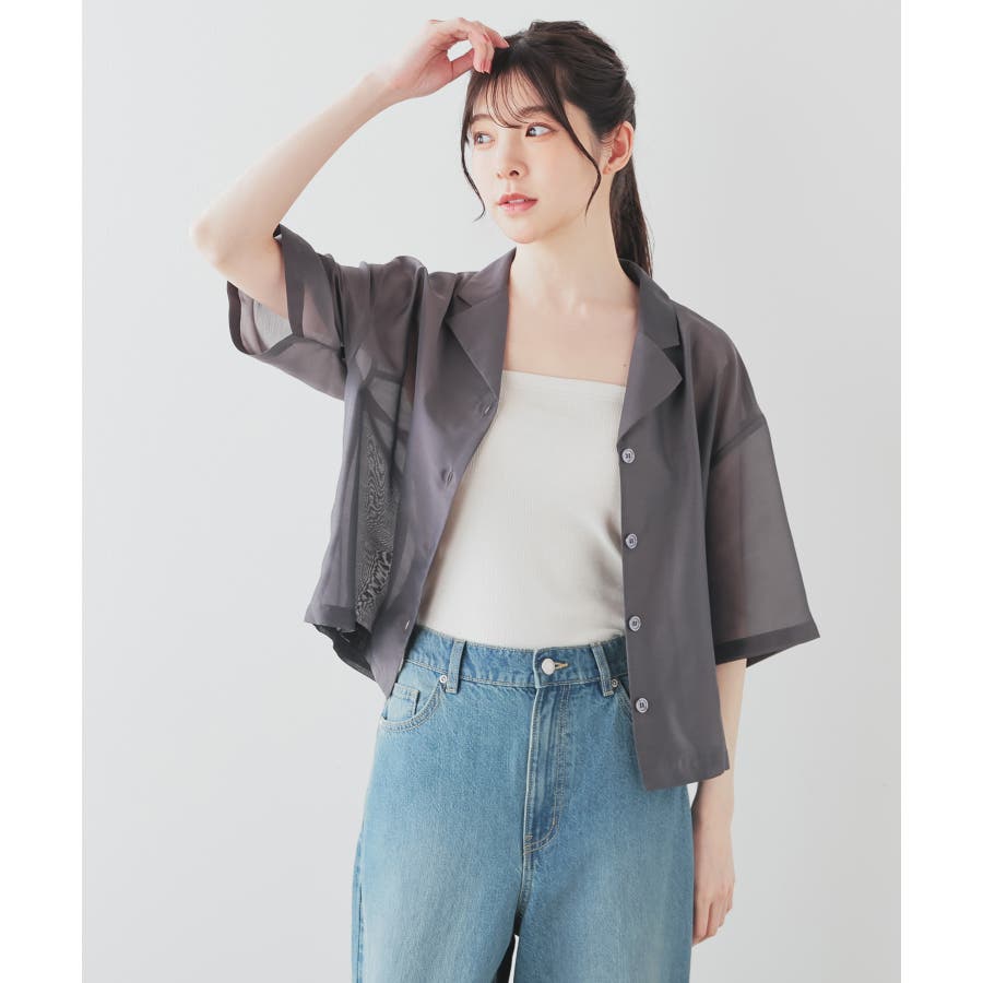 ヘルシーな肌見せが叶う涼しげシアーで、抜け感のある開襟衿デザイン。