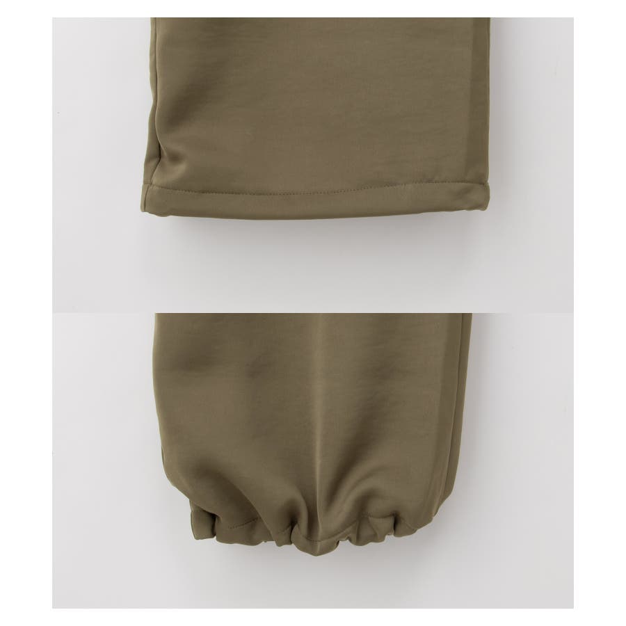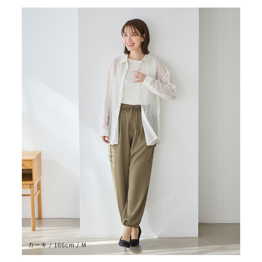 ループ付きで絞った際に紐が表に出ない裾ドロストは、緩めてストレートパンツとしても着用可能。