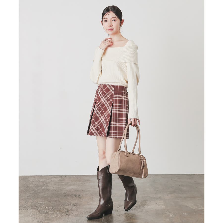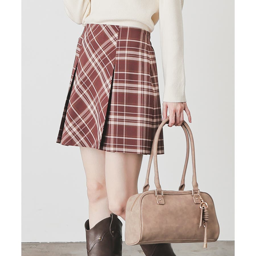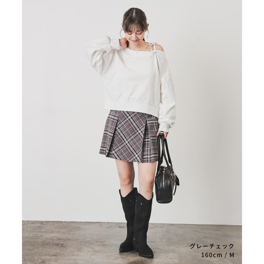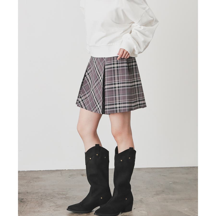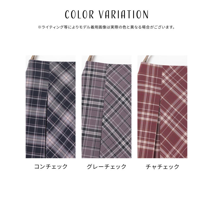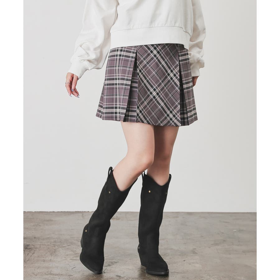 太めのボックスプリーツで広がりすぎずすっきり見え、美脚効果も期待できるデザイン。