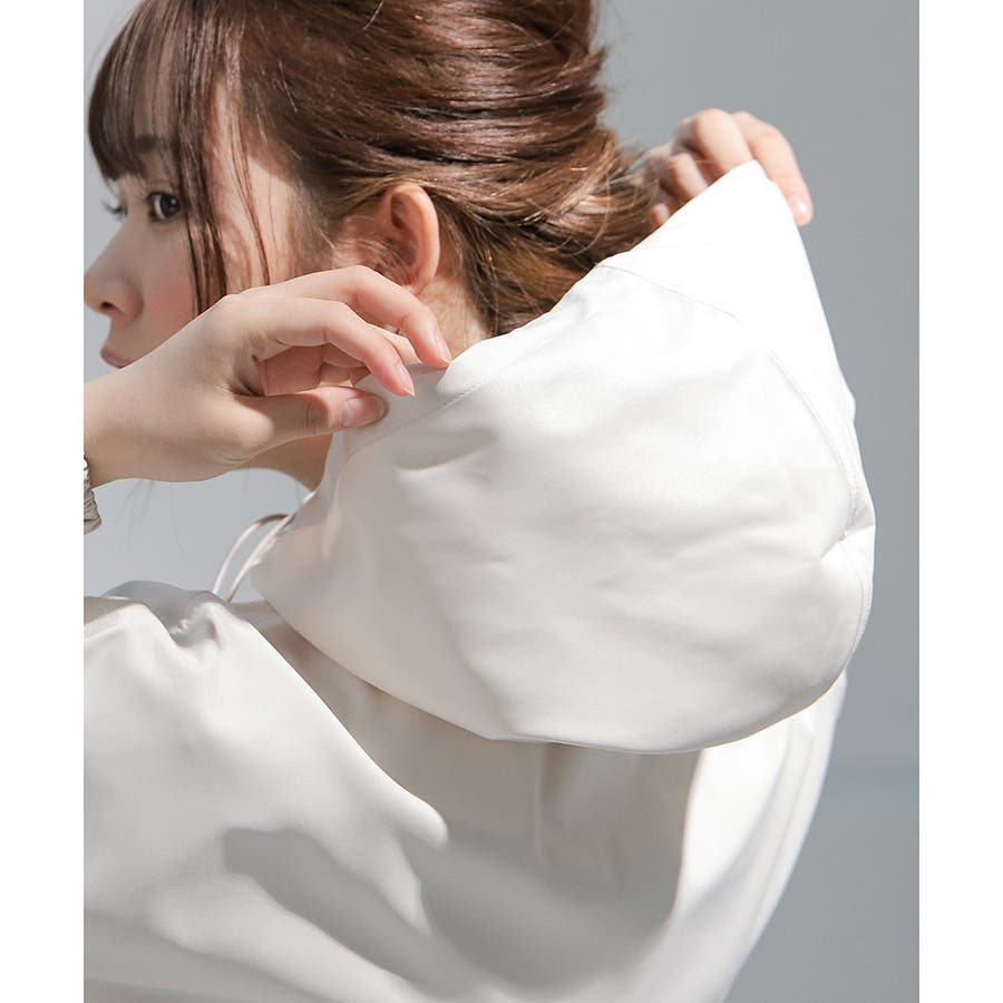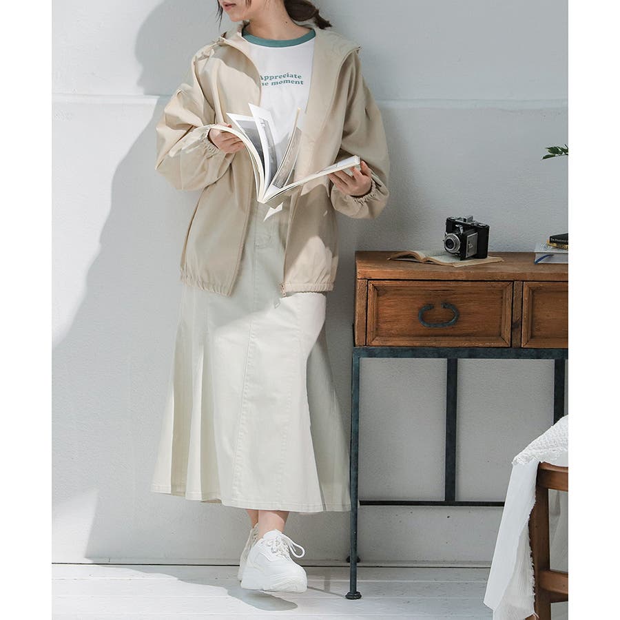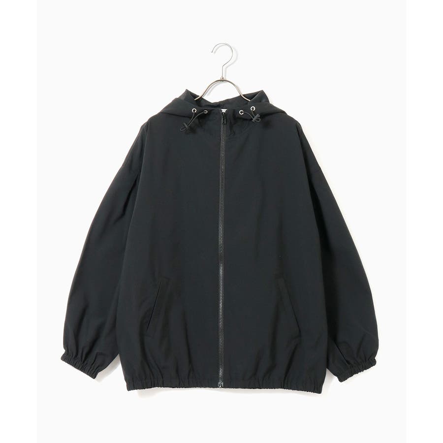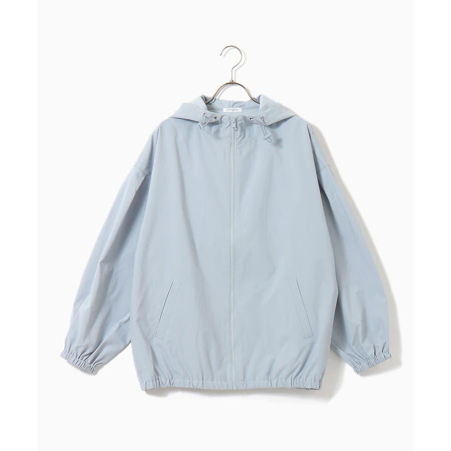 チュニック丈でどんなボトムスにも合わせやすいフードブルゾン。