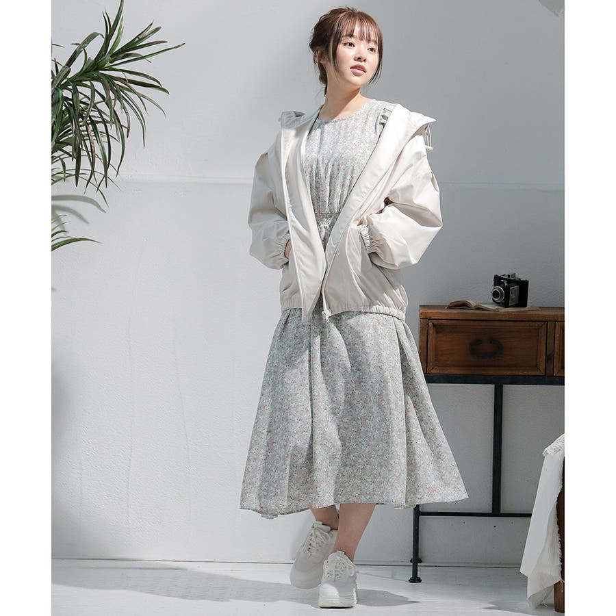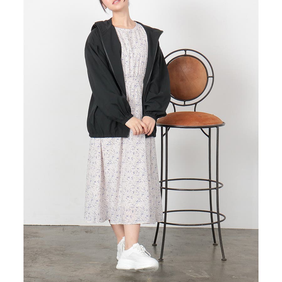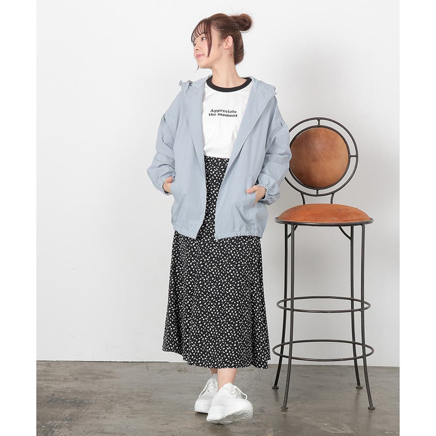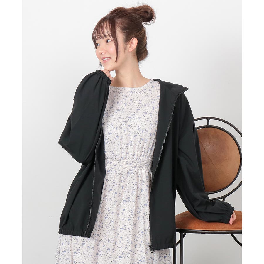 チュニック丈でどんなボトムスにも合わせやすいフードブルゾン。