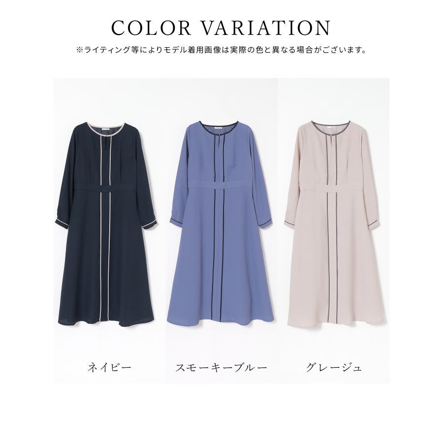 商品カテゴリ:5590519417 ワンピース 長袖 ロング丈 再生ポリエステル 配色パイピング ジョーゼット素材 無地 フレア クルーネック 後ウエストゴム 裏地付き フェミニン オールシーズン カテゴリ301011 dress ワンピ ロングワンピース マキシ丈 膝下丈 長い 長そで リサイクル 再生ポリ 環境保護 サスティナブル サステナブル エコ 配色 ジョーゼット 無地ワンピース フレアシルエット 丸首 ラウンドネック Uネック 伸びる 楽 ゆったり ゴム 裏地 透けない 裏地あり きれいめ 上品 可愛い おしゃれ 清楚 大人可愛い セレモニー 通勤 入学式 卒業式 タグGluタグ(G-10-H) Sサイズ S 小さいサイズ Mサイズ Lサイズ LLサイズ LL 大きいサイズ FP601 大人 30代 40代 50代 60代 ミセス 大人カジュアル こなれ ママ 垢抜け シーズンオール 春 春物 春服 春夏 夏 夏物 夏服 秋 秋物 秋服 秋冬 冬 冬物 冬服 新作 新着 ネイビー 紺 ブルー 青 スモーキーブルー グレージュ グレー 灰色 ベージュ 肌色 9417 559-51-9417 5590519417 GLACIER lusso グラシアルッソ honeys ハニーズ レディースファッション ladies fashion 女性 女 レディース ファッション 女性服 服 婦人服 559051941733 配色ワンピース 価格5980