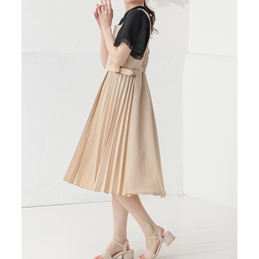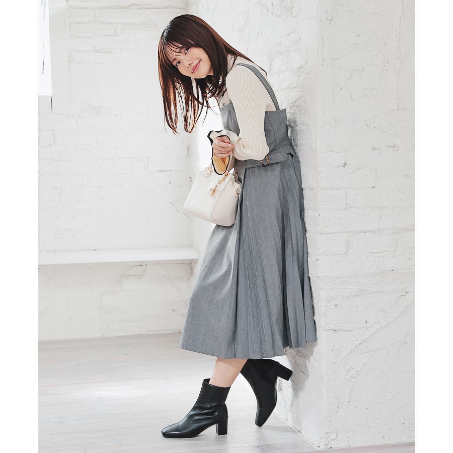 動くたびにふんわり揺れるサイドプリーツがフェミニンなデザイン。
