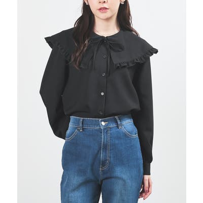 インパクト大の大きめ衿にフリルを飾ったキュートなデザイン。