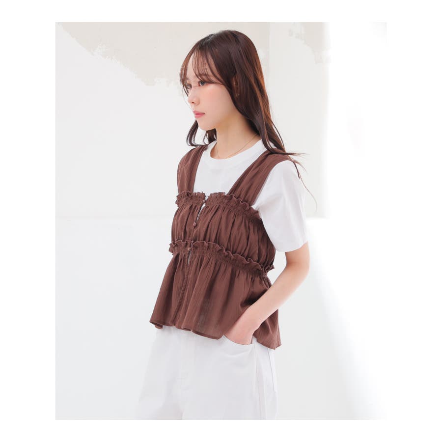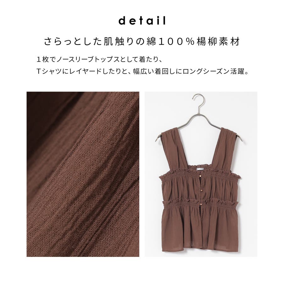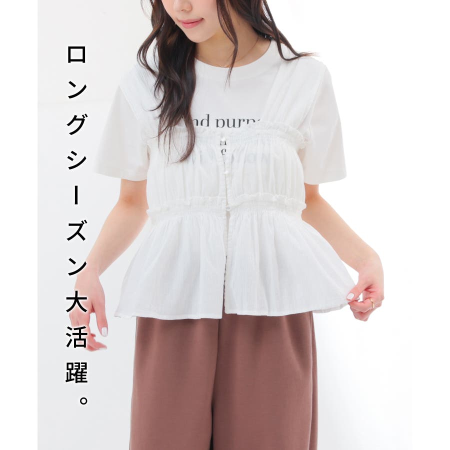 1枚でノースリーブトップスとして着たり、Tシャツにレイヤードしたりと、幅広い着回しにロングシーズン活躍。