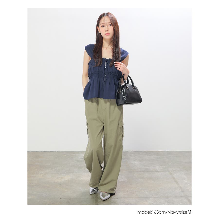 バスト上下のゴムシャーリングでメリハリのあるシルエット。