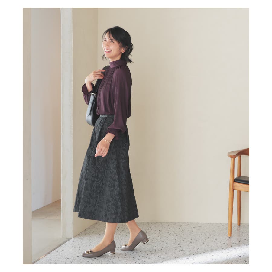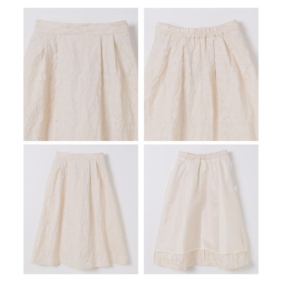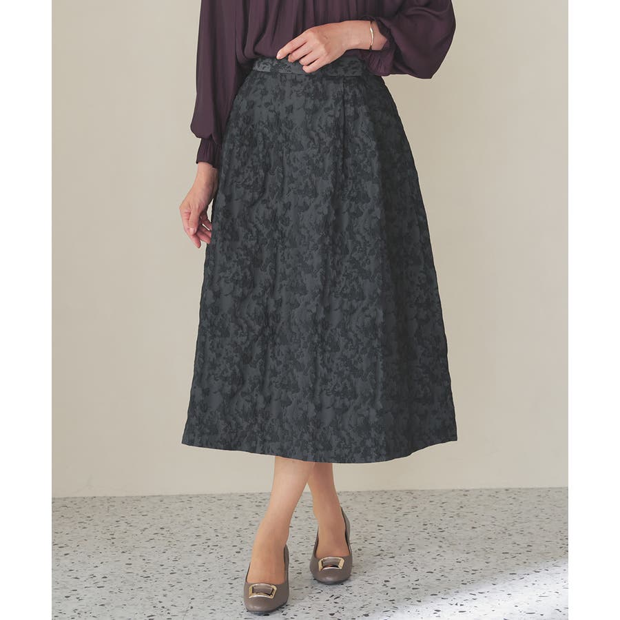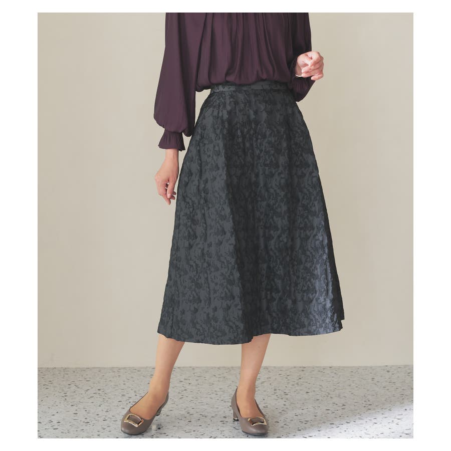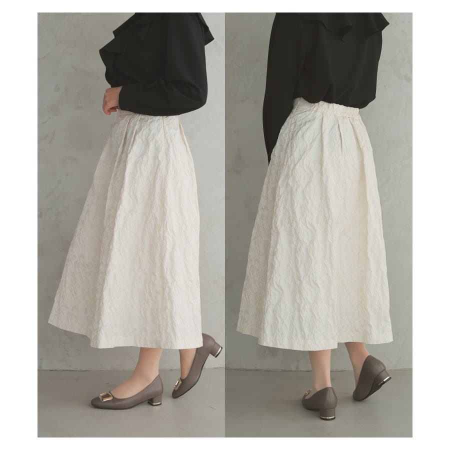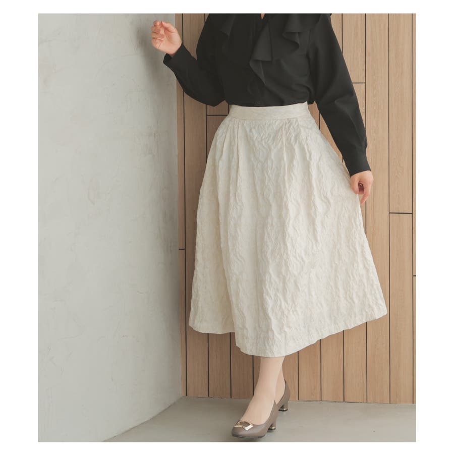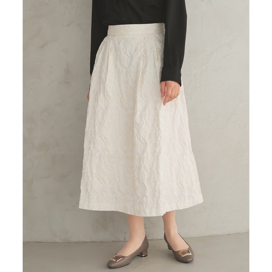1枚でコーデが華やかになる、生地の凹凸感が上品なスカート。