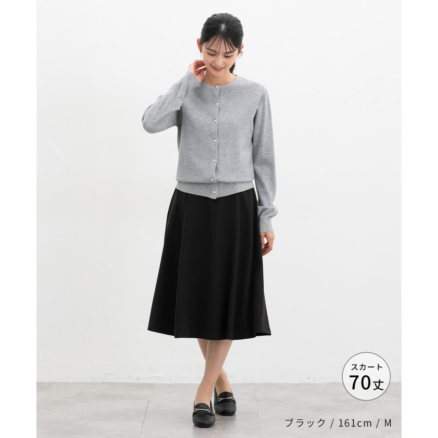 広がりすぎないフレアのきれい見えシルエット、70cm丈タイプ。