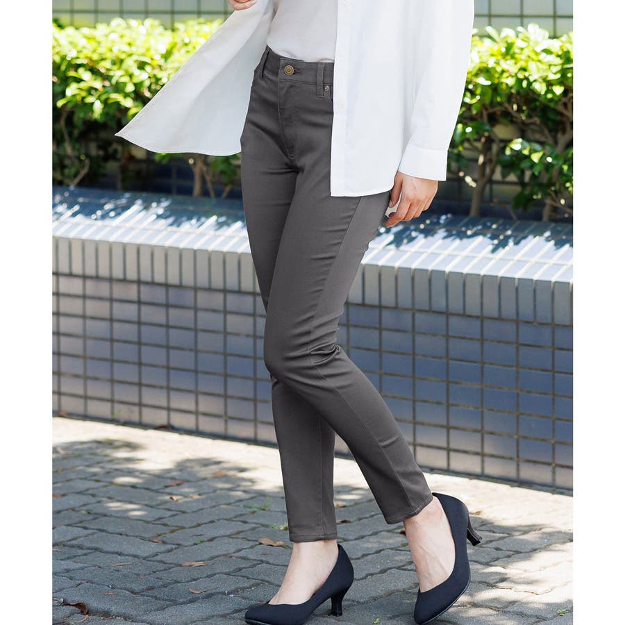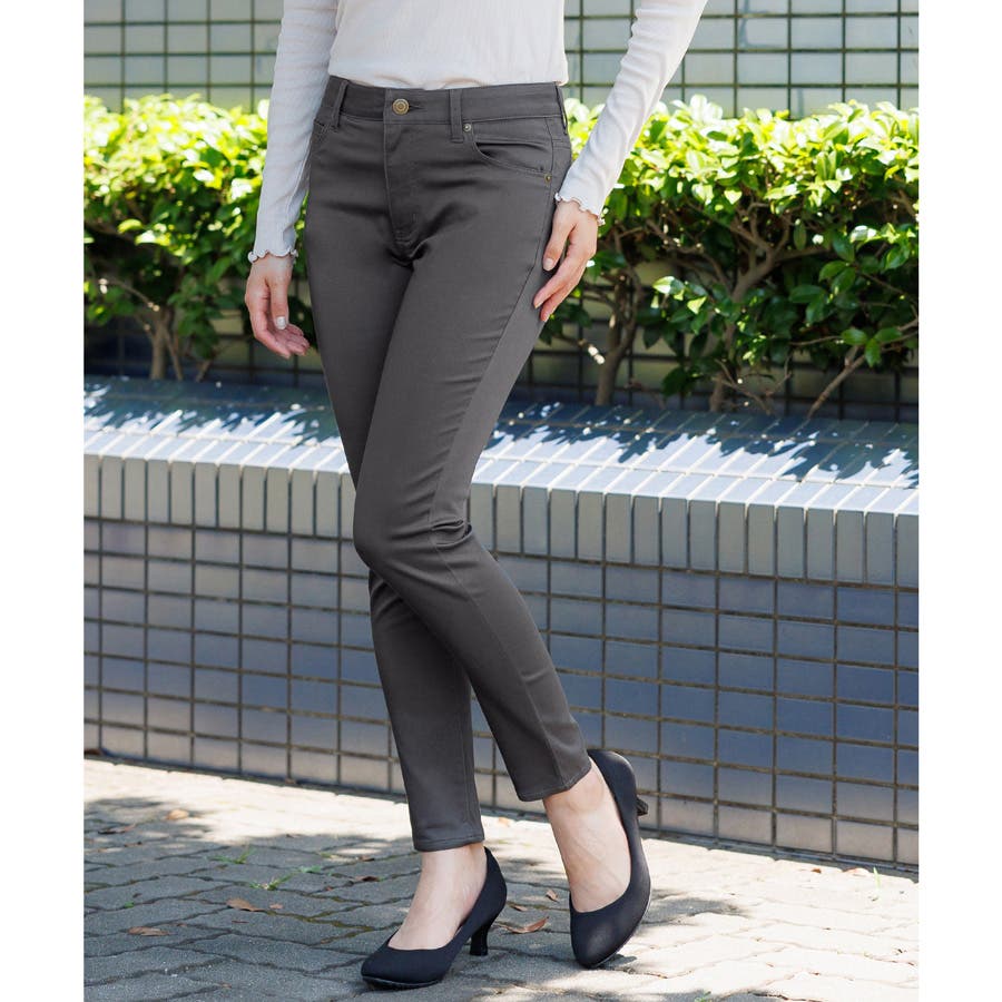 オールシーズン着用可能なスリムカラースキニー、股下67cmタイプ。