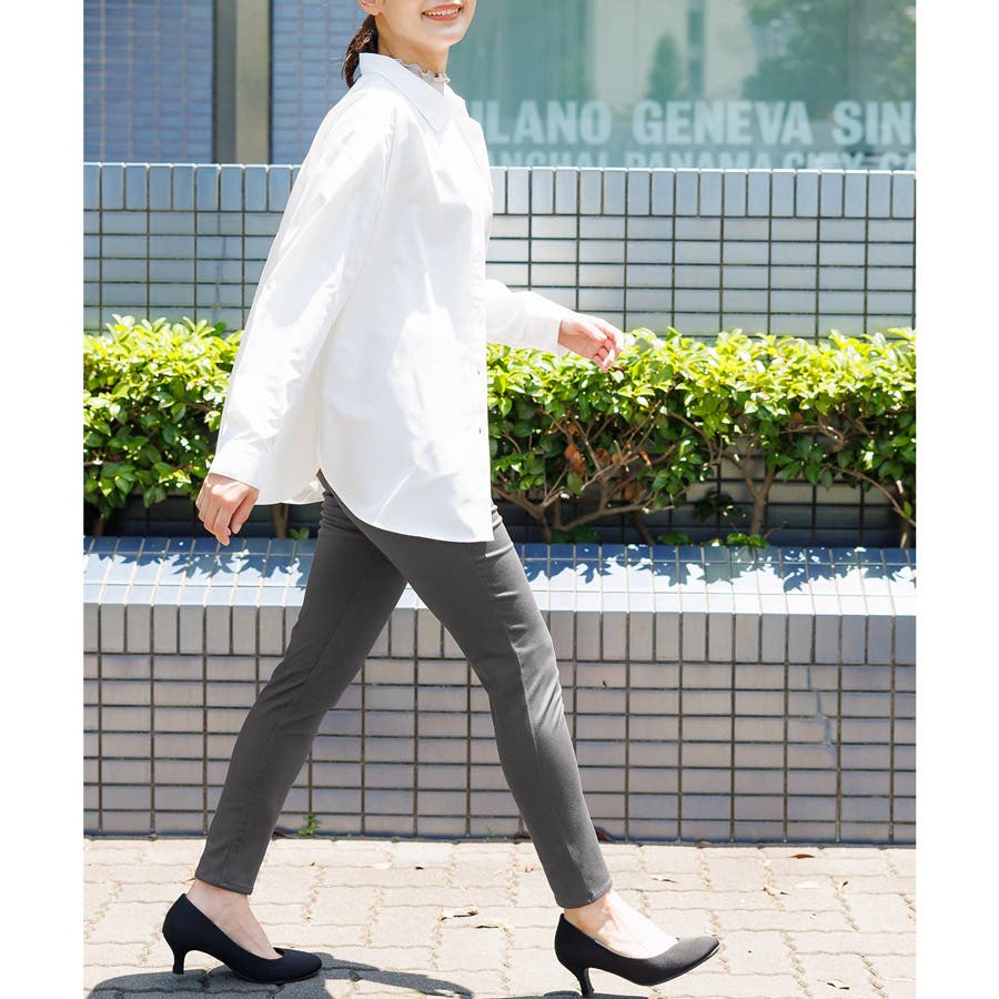 ラクに美脚見せできる、しっかりした生地と綺麗なシルエット。